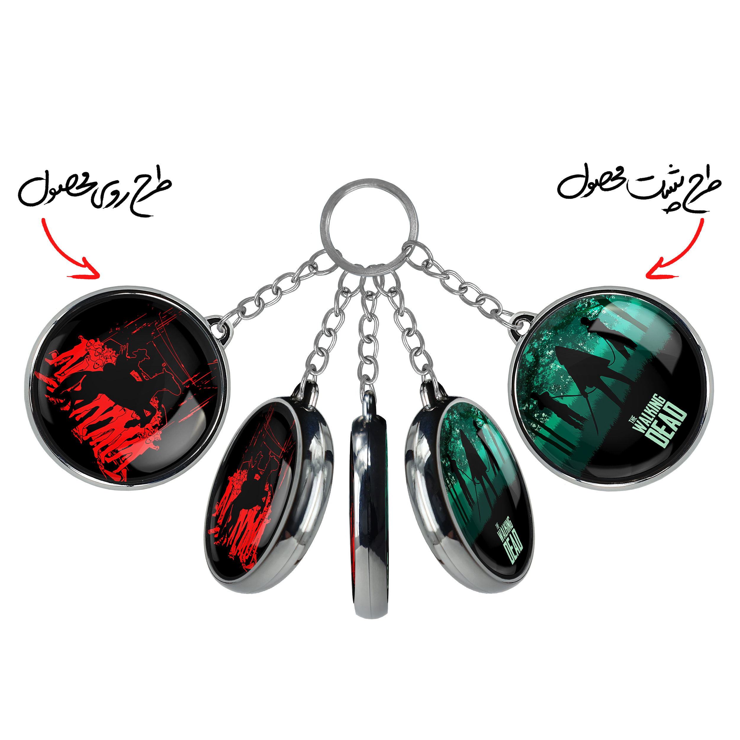 جاکلیدی دوطرفه سریال مردگان متحرک The Walking Dead خندالو محصولی کاربردی و جدید است که در هر دو سمت محصول، تصویری متفاوت اما از یک موضوع چاپ شده و تفاوت اصلی آن با جاکلیدی های یک طرفه در همین است که هر دو سمت پشت و روی جاکلیدی، طرحی دیدنی و جذاب دارد. همچنین رینگ بکار برده شده برای دور طرح ها آبکاری کروم درجه یک و رنگ ثابت است و برخلاف سایر محصولات مشابه، از رنگ های متفرقه و یا سفید استفاده نشده، که این مهم، زیبایی محصول نهایی را چند برابر کرده است. جاکلیدی های دوطرفه سریال مردگان متحرک The Walking Dead با استفاده از روکش سلفون براق ضدخش تولید شده که خاصیت ضدخش بودن آن عمر مفید استفاده از جاکلیدی ها را افزایش میدهد. چاپ جاکلیدی ها با دستگاه های استاندارد و با بهترین سطح کیفیت صورت گرفته و طرح با شفافیتی مثال زدنی و با سلفون چسبی تولید شده است که باعث شده محصول نهایی بدون شکست نور دیده شود. همچنین بسته بندی جذاب و مینیمال جاکلیدی دوطرفه سریال مردگان متحرک The Walking Dead ، آنها را محصولی مناسب هدیه کرده است. زنجیر و حلقه بکار برده شده در جاکلیدی خندالو از نوع حلقه ضخیم و محکم بوده و حین استفاده آسیب نمی بیند.
