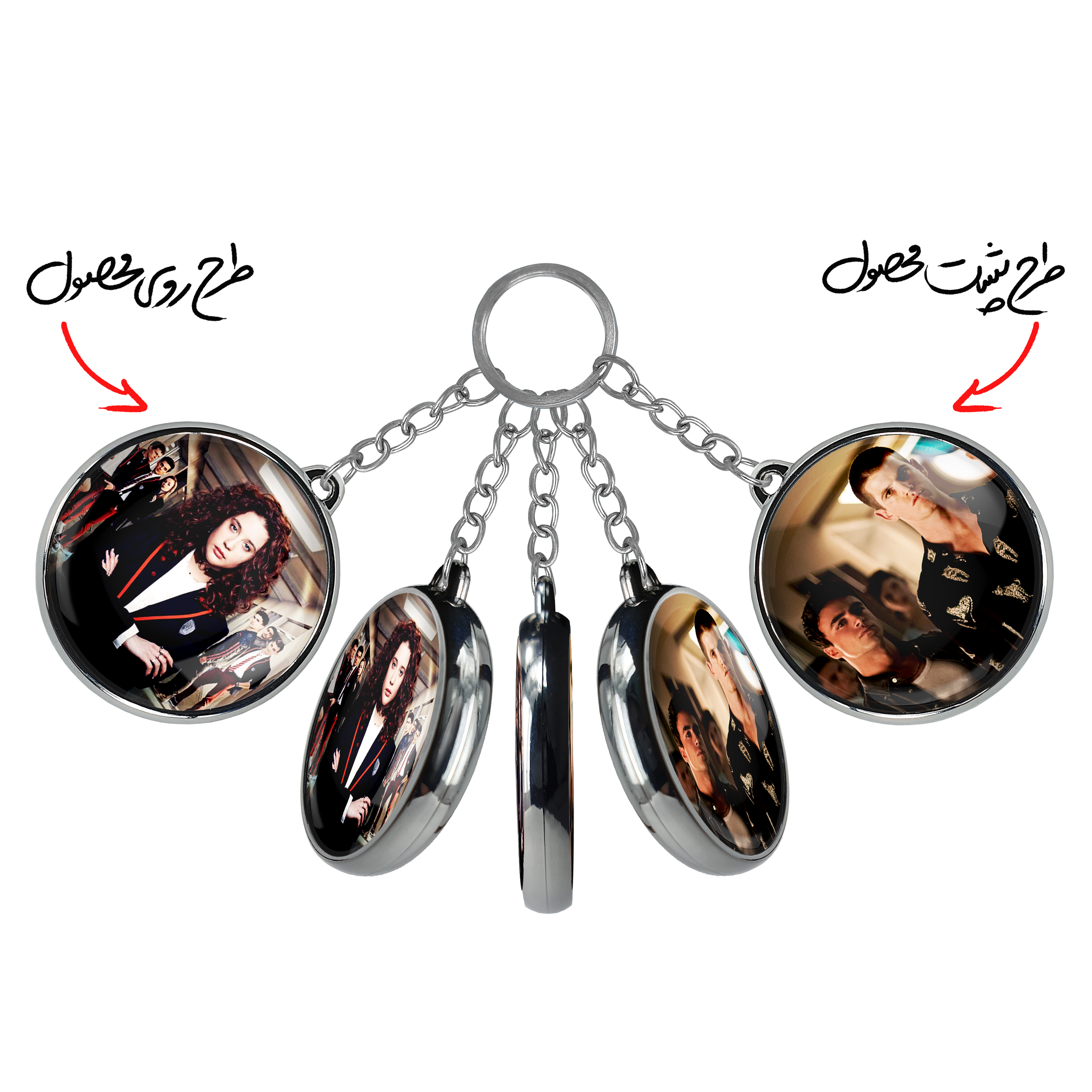 جاکلیدی دوطرفه سریال نخبه Eliteخندالو محصولی کاربردی و جدید است که در هر دو سمت محصول، تصویری متفاوت اما از یک موضوع چاپ شده و تفاوت اصلی آن با جاکلیدی های یک طرفه در همین است که هر دو سمت پشت و روی جاکلیدی، طرحی دیدنی و جذاب دارد. همچنین رینگ بکار برده شده برای دور طرح ها آبکاری کروم درجه یک و رنگ ثابت است و برخلاف سایر محصولات مشابه، از رنگ های متفرقه و یا سفید استفاده نشده، که این مهم، زیبایی محصول نهایی را چند برابر کرده است. جاکلیدی های دوطرفه سریال نخبه Eliteبا استفاده از روکش سلفون براق ضدخش تولید شده که خاصیت ضدخش بودن آن عمر مفید استفاده از جاکلیدی ها را افزایش میدهد. چاپ جاکلیدی ها با دستگاه های استاندارد و با بهترین سطح کیفیت صورت گرفته و طرح با شفافیتی مثال زدنی و با سلفون چسبی تولید شده است که باعث شده محصول نهایی بدون شکست نور دیده شود. همچنین بسته بندی جذاب و مینیمال جاکلیدی دوطرفه سریال نخبه Elite، آنها را محصولی مناسب هدیه کرده است. زنجیر و حلقه بکار برده شده در جاکلیدی خندالو از نوع حلقه ضخیم و محکم بوده و حین استفاده آسیب نمی بیند.