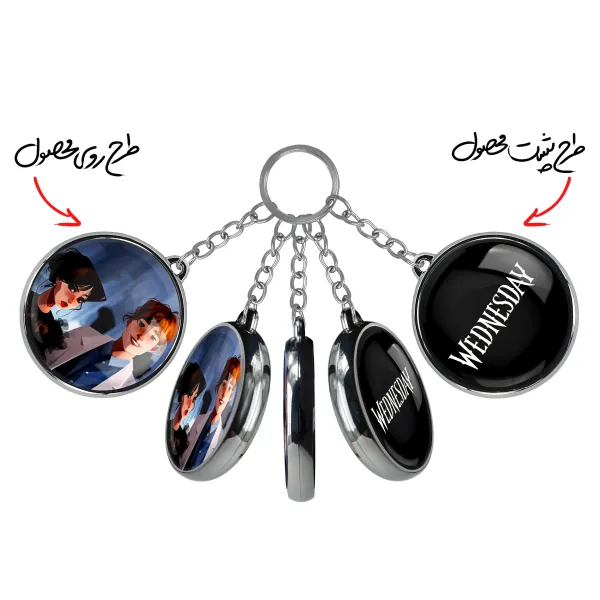 جاکلیدی دوطرفه سریال ونزدی Wednesdayخندالو محصولی کاربردی و جدید است که در هر دو سمت محصول، تصویری متفاوت اما از یک موضوع چاپ شده و تفاوت اصلی آن با جاکلیدی های یک طرفه در همین است که هر دو سمت پشت و روی جاکلیدی، طرحی دیدنی و جذاب دارد.