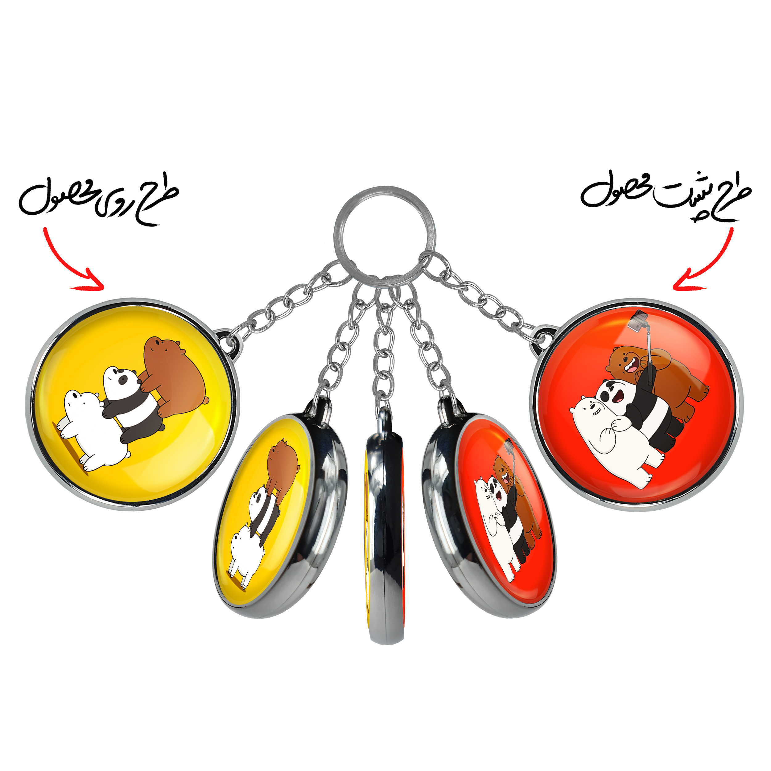 جاکلیدی دوطرفه سه خرس کله پوک خندالو محصولی کاربردی و جدید است که در هر دو سمت محصول، تصویری متفاوت اما از یک موضوع چاپ شده و تفاوت اصلی آن با جاکلیدی های یک طرفه در همین است که هر دو سمت پشت و روی جاکلیدی، طرحی دیدنی و جذاب دارد.