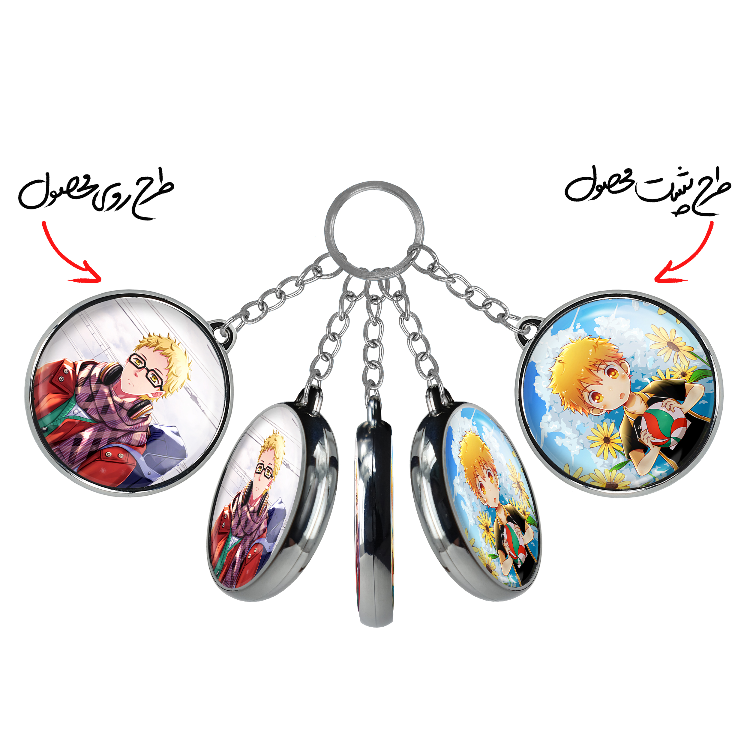 جاکلیدی دوطرفه سوکیشیما کئی انیمه آبشار سرنوشت هایکیو کاگیاما خندالو محصولی کاربردی و جدید است که در هر دو سمت محصول، تصویری متفاوت اما از یک موضوع چاپ شده و تفاوت اصلی آن با جاکلیدی های یک طرفه در همین است که هر دو سمت پشت و روی جاکلیدی، طرحی دیدنی و جذاب دارد. همچنین رینگ بکار برده شده برای دور طرح ها آبکاری کروم درجه یک و رنگ ثابت است و برخلاف سایر محصولات مشابه، از رنگ های متفرقه و یا سفید استفاده نشده، که این مهم، زیبایی محصول نهایی را چند برابر کرده است. جاکلیدی های دوطرفه سوکیشیما کئی انیمه آبشار سرنوشت هایکیو کاگیاما با استفاده از روکش سلفون براق ضدخش تولید شده که خاصیت ضدخش بودن آن عمر مفید استفاده از جاکلیدی ها را افزایش میدهد. چاپ جاکلیدی ها با دستگاه های استاندارد و با بهترین سطح کیفیت صورت گرفته و طرح با شفافیتی مثال زدنی و با سلفون چسبی تولید شده است که باعث شده محصول نهایی بدون شکست نور دیده شود. همچنین بسته بندی جذاب و مینیمال جاکلیدی دوطرفه سوکیشیما کئی انیمه آبشار سرنوشت هایکیو کاگیاما ، آنها را محصولی مناسب هدیه کرده است. زنجیر و حلقه بکار برده شده در جاکلیدی خندالو از نوع حلقه ضخیم و محکم بوده و حین استفاده آسیب نمی بیند.