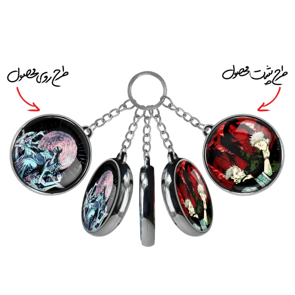 جاکلیدی دوطرفه سوگورو گتو انیمه جوجوتسو کایزن خندالو محصولی کاربردی و جدید است که در هر دو سمت محصول، تصویری متفاوت اما از یک موضوع چاپ شده و تفاوت اصلی آن با جاکلیدی های یک طرفه در همین است که هر دو سمت پشت و روی جاکلیدی، طرحی دیدنی و جذاب دارد.