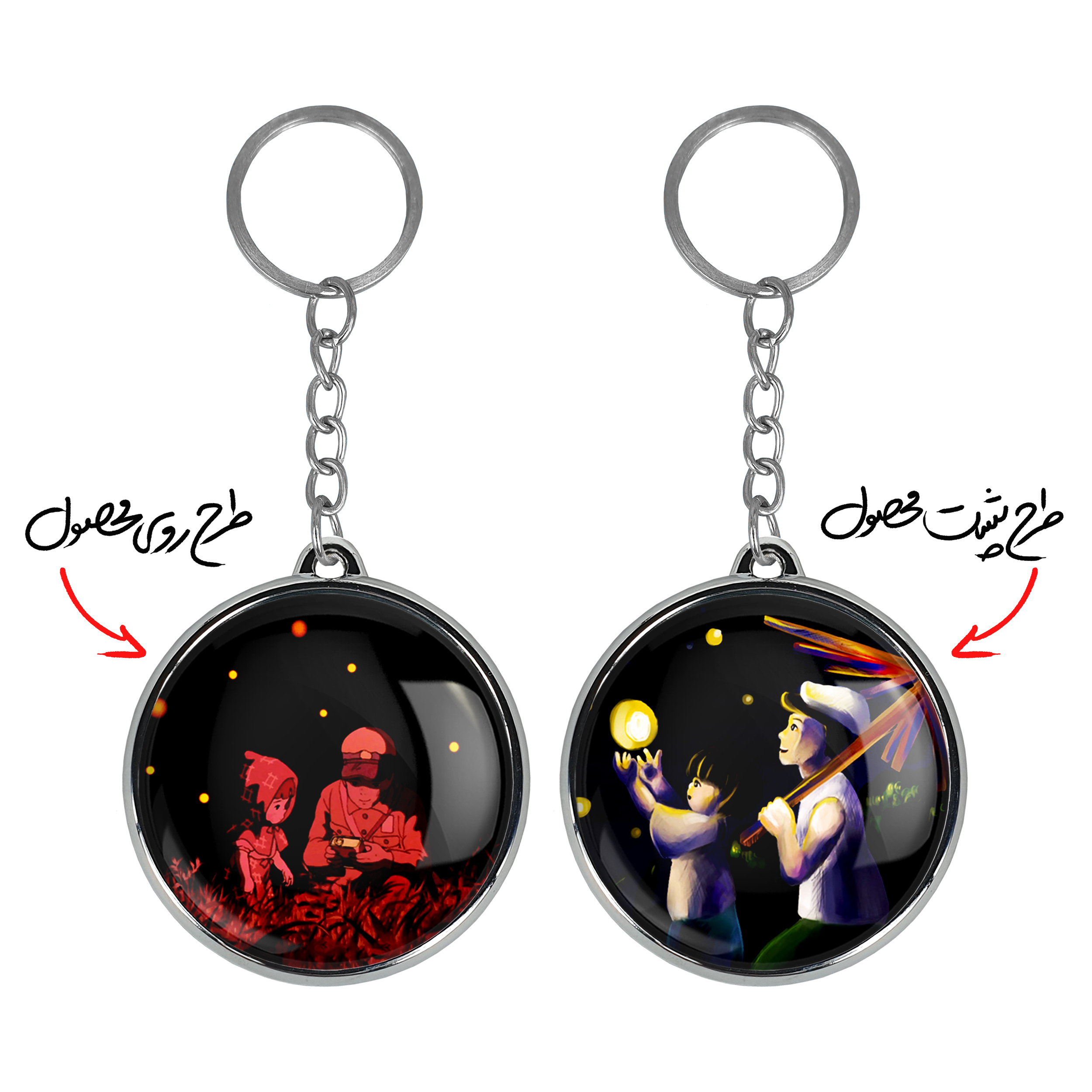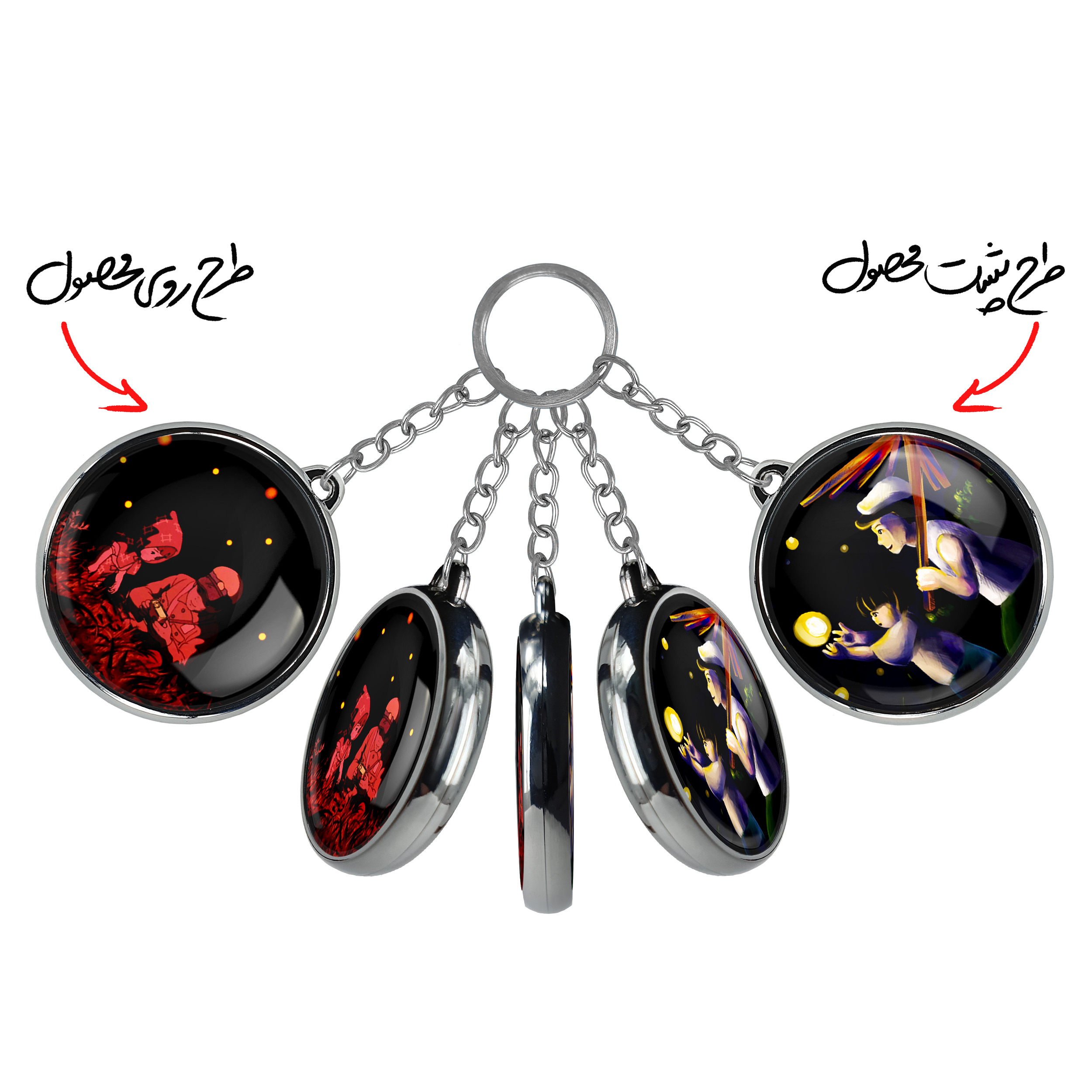 جاکلیدی دوطرفه سیتا و ستسوکو انیمیشن گورستان کرم های شب تاب خندالو محصولی کاربردی و جدید است که در هر دو سمت محصول، تصویری متفاوت اما از یک موضوع چاپ شده و تفاوت اصلی آن با جاکلیدی های یک طرفه در همین است که هر دو سمت پشت و روی جاکلیدی، طرحی دیدنی و جذاب دارد. همچنین رینگ بکار برده شده برای دور طرح ها آبکاری کروم درجه یک و رنگ ثابت است و برخلاف سایر محصولات مشابه، از رنگ های متفرقه و یا سفید استفاده نشده، که این مهم، زیبایی محصول نهایی را چند برابر کرده است. جاکلیدی های دوطرفه سیتا و ستسوکو انیمیشن گورستان کرم های شب تاب با استفاده از روکش سلفون براق ضدخش تولید شده که خاصیت ضدخش بودن آن عمر مفید استفاده از جاکلیدی ها را افزایش میدهد. چاپ جاکلیدی ها با دستگاه های استاندارد و با بهترین سطح کیفیت صورت گرفته و طرح با شفافیتی مثال زدنی و با سلفون چسبی تولید شده است که باعث شده محصول نهایی بدون شکست نور دیده شود. همچنین بسته بندی جذاب و مینیمال جاکلیدی دوطرفه سیتا و ستسوکو انیمیشن گورستان کرم های شب تاب ، آنها را محصولی مناسب هدیه کرده است. زنجیر و حلقه بکار برده شده در جاکلیدی خندالو از نوع حلقه ضخیم و محکم بوده و حین استفاده آسیب نمی بیند.