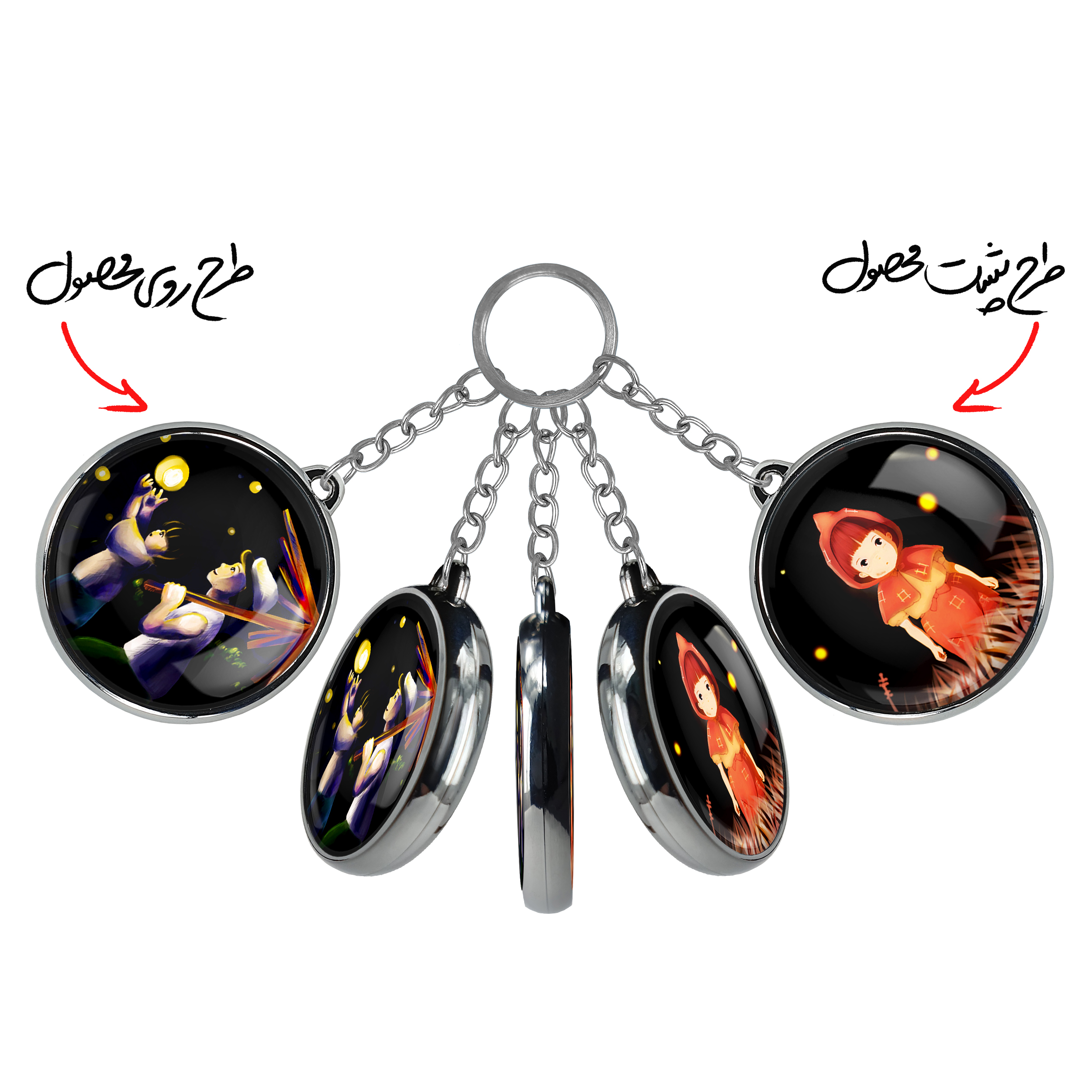 جاکلیدی دوطرفه سیتا و ستسوکو انیمیشن گورستان کرم های شب تاب خندالو محصولی کاربردی و جدید است که در هر دو سمت محصول، تصویری متفاوت اما از یک موضوع چاپ شده و تفاوت اصلی آن با جاکلیدی های یک طرفه در همین است که هر دو سمت پشت و روی جاکلیدی، طرحی دیدنی و جذاب دارد. همچنین رینگ بکار برده شده برای دور طرح ها آبکاری کروم درجه یک و رنگ ثابت است و برخلاف سایر محصولات مشابه، از رنگ های متفرقه و یا سفید استفاده نشده، که این مهم، زیبایی محصول نهایی را چند برابر کرده است. جاکلیدی های دوطرفه سیتا و ستسوکو انیمیشن گورستان کرم های شب تاب با استفاده از روکش سلفون براق ضدخش تولید شده که خاصیت ضدخش بودن آن عمر مفید استفاده از جاکلیدی ها را افزایش میدهد. چاپ جاکلیدی ها با دستگاه های استاندارد و با بهترین سطح کیفیت صورت گرفته و طرح با شفافیتی مثال زدنی و با سلفون چسبی تولید شده است که باعث شده محصول نهایی بدون شکست نور دیده شود. همچنین بسته بندی جذاب و مینیمال جاکلیدی دوطرفه سیتا و ستسوکو انیمیشن گورستان کرم های شب تاب ، آنها را محصولی مناسب هدیه کرده است. زنجیر و حلقه بکار برده شده در جاکلیدی خندالو از نوع حلقه ضخیم و محکم بوده و حین استفاده آسیب نمی بیند.
