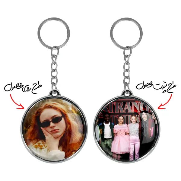 جاکلیدی دوطرفه سیدی سریال استرنجر تینگز Stranger Things خندالو محصولی کاربردی و جدید است که در هر دو سمت محصول، تصویری متفاوت اما از یک موضوع چاپ شده و تفاوت اصلی آن با جاکلیدی های یک طرفه در همین است که هر دو سمت پشت و روی جاکلیدی، طرحی دیدنی و جذاب دارد. همچنین رینگ بکار برده شده برای دور طرح ها آبکاری کروم درجه یک و رنگ ثابت است و برخلاف سایر محصولات مشابه، از رنگ های متفرقه و یا سفید استفاده نشده، که این مهم، زیبایی محصول نهایی را چند برابر کرده است. جاکلیدی های دوطرفه سیدی سریال استرنجر تینگز Stranger Things با استفاده از روکش سلفون براق ضدخش تولید شده که خاصیت ضدخش بودن آن عمر مفید استفاده از جاکلیدی ها را افزایش میدهد. چاپ جاکلیدی ها با دستگاه های استاندارد و با بهترین سطح کیفیت صورت گرفته و طرح با شفافیتی مثال زدنی و با سلفون چسبی تولید شده است که باعث شده محصول نهایی بدون شکست نور دیده شود. همچنین بسته بندی جذاب و مینیمال جاکلیدی دوطرفه سیدی سریال استرنجر تینگز Stranger Things ، آنها را محصولی مناسب هدیه کرده است. زنجیر و حلقه بکار برده شده در جاکلیدی خندالو از نوع حلقه ضخیم و محکم بوده و حین استفاده آسیب نمی بیند.