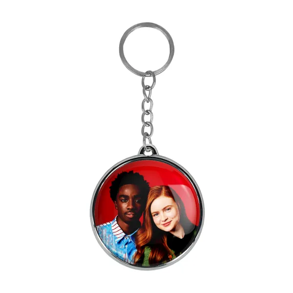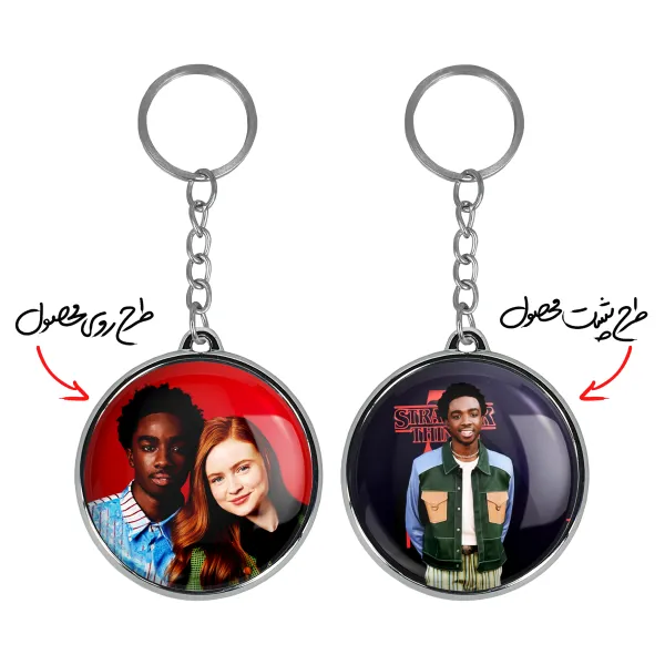 جاکلیدی دوطرفه سیدی و کیلب سریال استرنجر تینگز Stranger Things خندالو محصولی کاربردی و جدید است که در هر دو سمت محصول، تصویری متفاوت اما از یک موضوع چاپ شده و تفاوت اصلی آن با جاکلیدی های یک طرفه در همین است که هر دو سمت پشت و روی جاکلیدی، طرحی دیدنی و جذاب دارد. همچنین رینگ بکار برده شده برای دور طرح ها آبکاری کروم درجه یک و رنگ ثابت است و برخلاف سایر محصولات مشابه، از رنگ های متفرقه و یا سفید استفاده نشده، که این مهم، زیبایی محصول نهایی را چند برابر کرده است. جاکلیدی های دوطرفه سیدی و کیلب سریال استرنجر تینگز Stranger Things با استفاده از روکش سلفون براق ضدخش تولید شده که خاصیت ضدخش بودن آن عمر مفید استفاده از جاکلیدی ها را افزایش میدهد. چاپ جاکلیدی ها با دستگاه های استاندارد و با بهترین سطح کیفیت صورت گرفته و طرح با شفافیتی مثال زدنی و با سلفون چسبی تولید شده است که باعث شده محصول نهایی بدون شکست نور دیده شود. همچنین بسته بندی جذاب و مینیمال جاکلیدی دوطرفه سیدی و کیلب سریال استرنجر تینگز Stranger Things ، آنها را محصولی مناسب هدیه کرده است. زنجیر و حلقه بکار برده شده در جاکلیدی خندالو از نوع حلقه ضخیم و محکم بوده و حین استفاده آسیب نمی بیند.