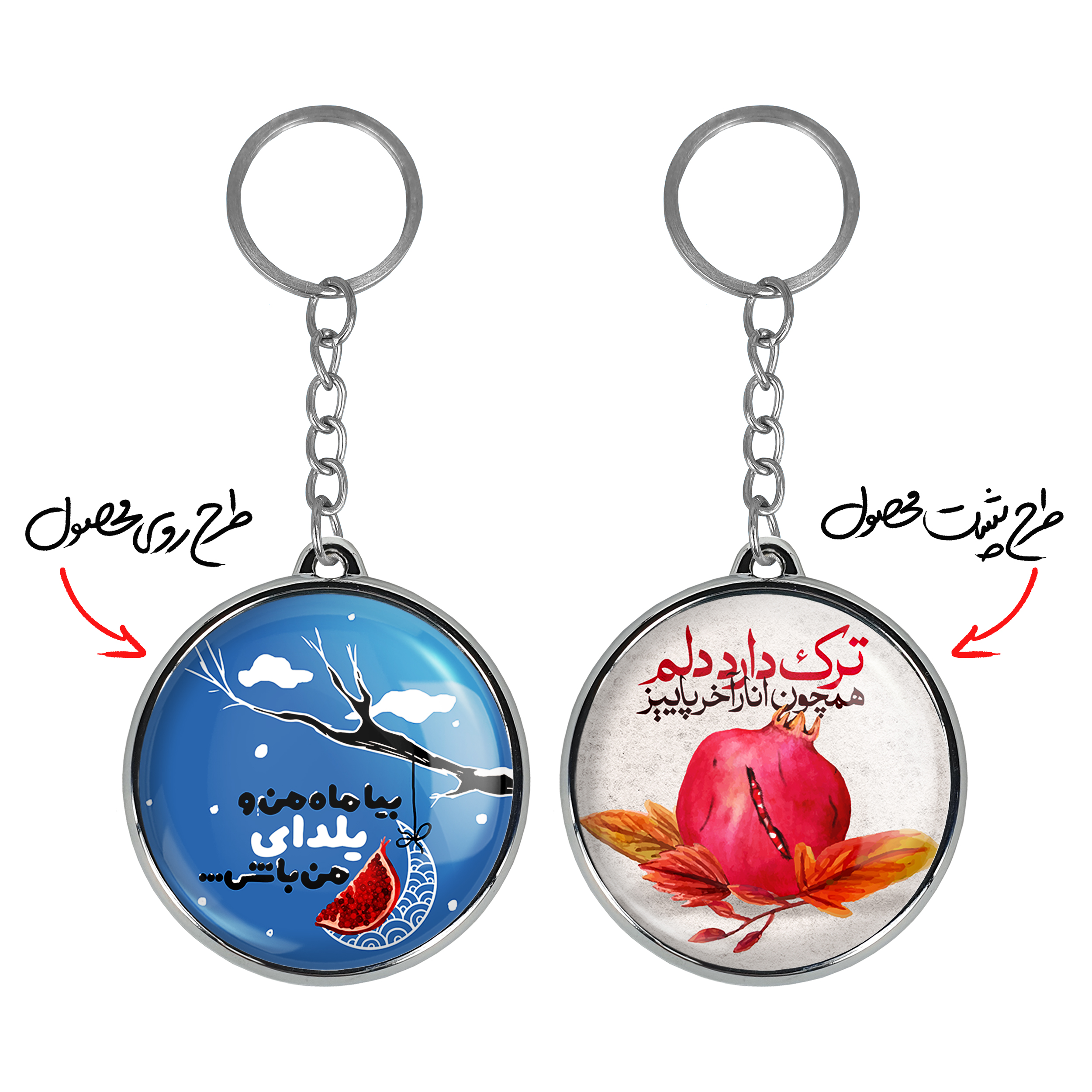 جاکلیدی دوطرفه شب یلدا خندالو محصولی کاربردی و جدید است که در هر دو سمت محصول، تصویری متفاوت اما از یک موضوع چاپ شده و تفاوت اصلی آن با جاکلیدی های یک طرفه در همین است که هر دو سمت پشت و روی جاکلیدی، طرحی دیدنی و جذاب دارد.