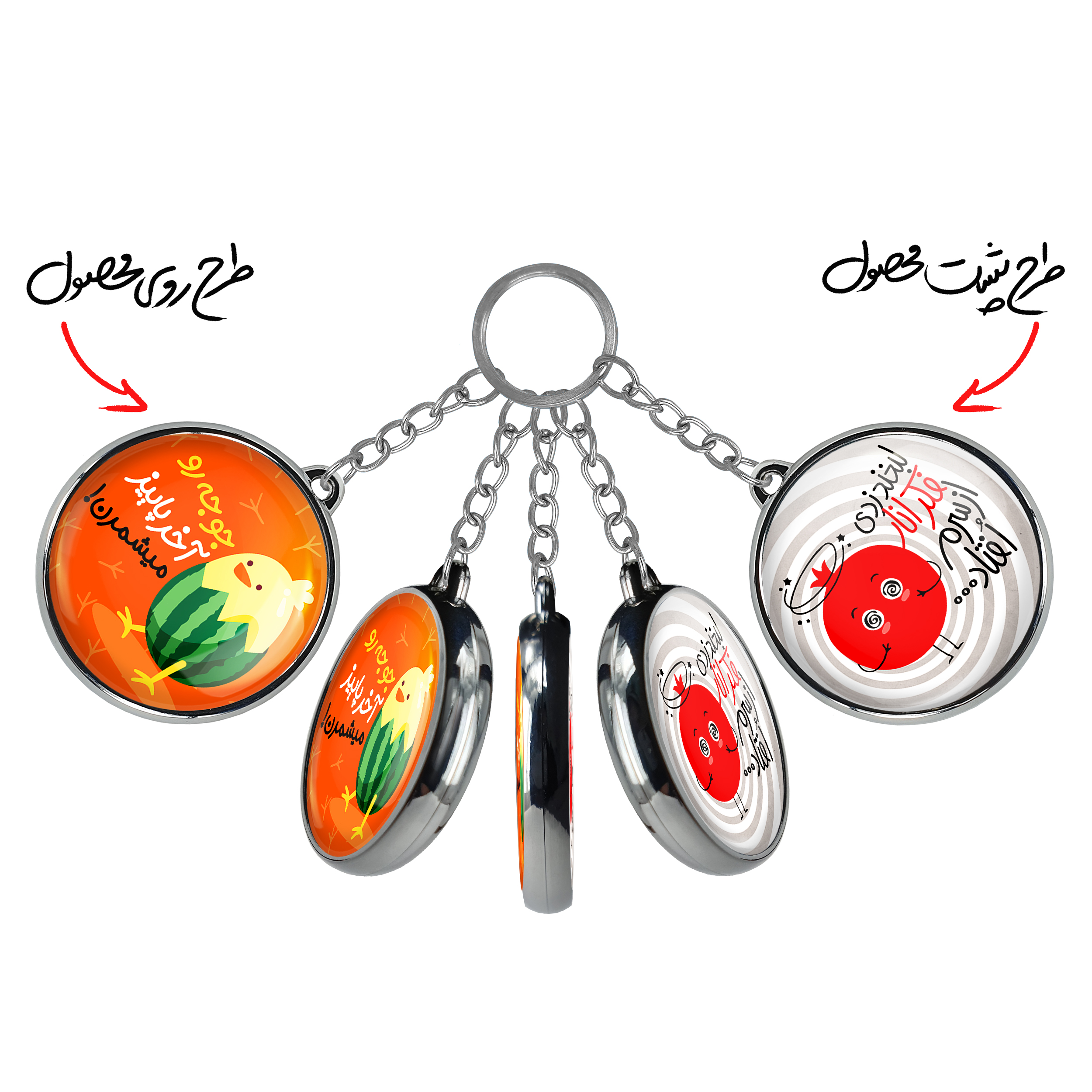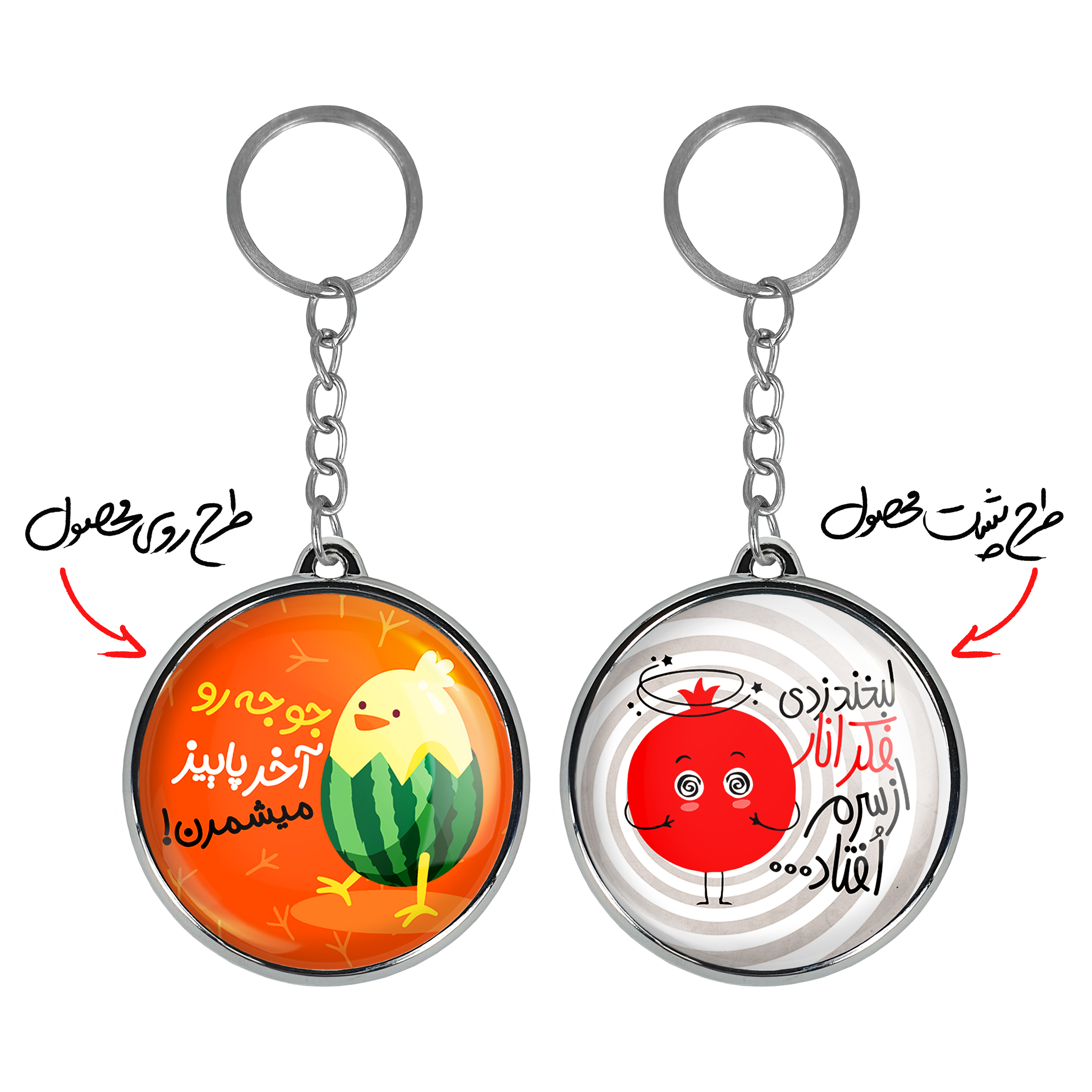 جاکلیدی دوطرفه شب یلدا خندالو محصولی کاربردی و جدید است که در هر دو سمت محصول، تصویری متفاوت اما از یک موضوع چاپ شده و تفاوت اصلی آن با جاکلیدی های یک طرفه در همین است که هر دو سمت پشت و روی جاکلیدی، طرحی دیدنی و جذاب دارد.