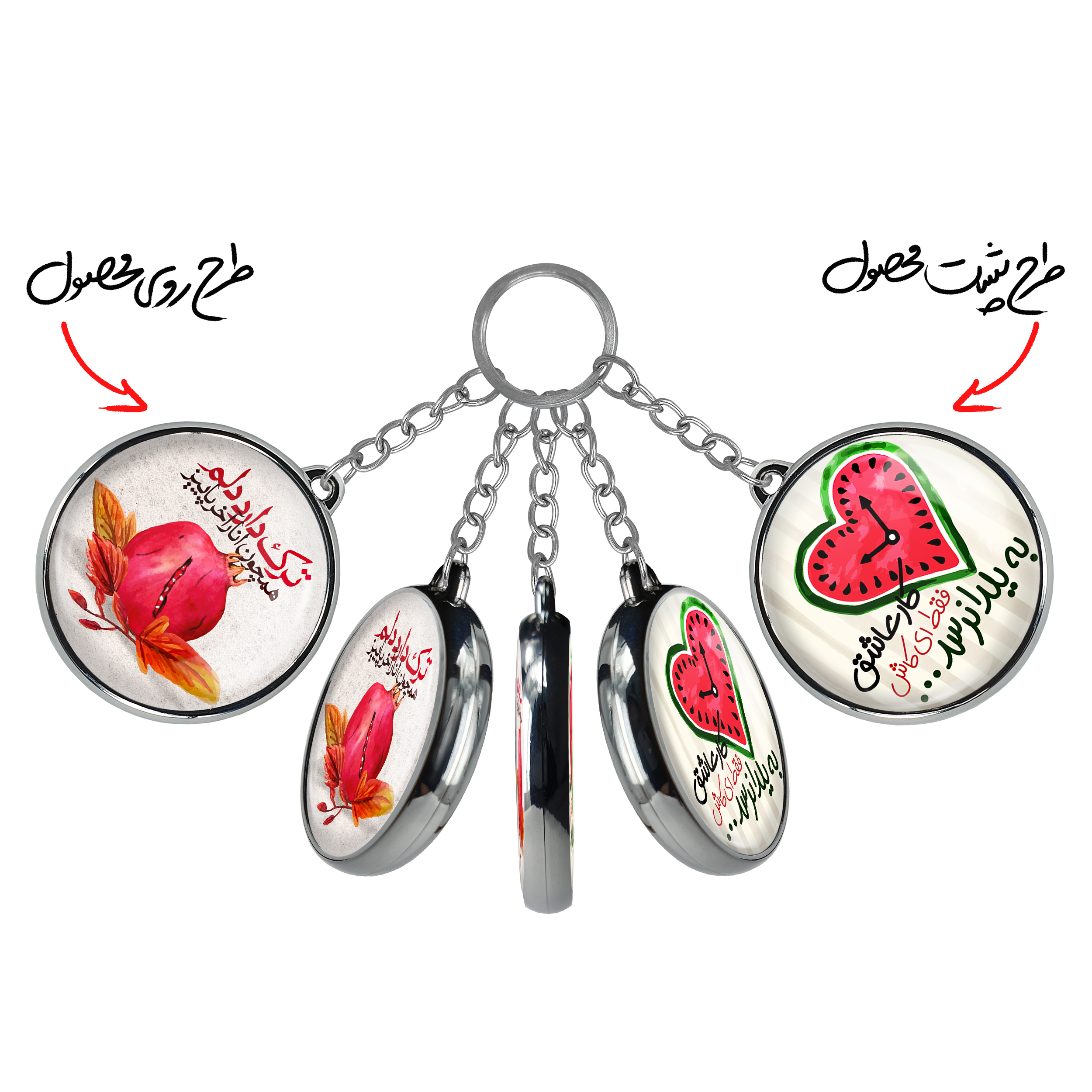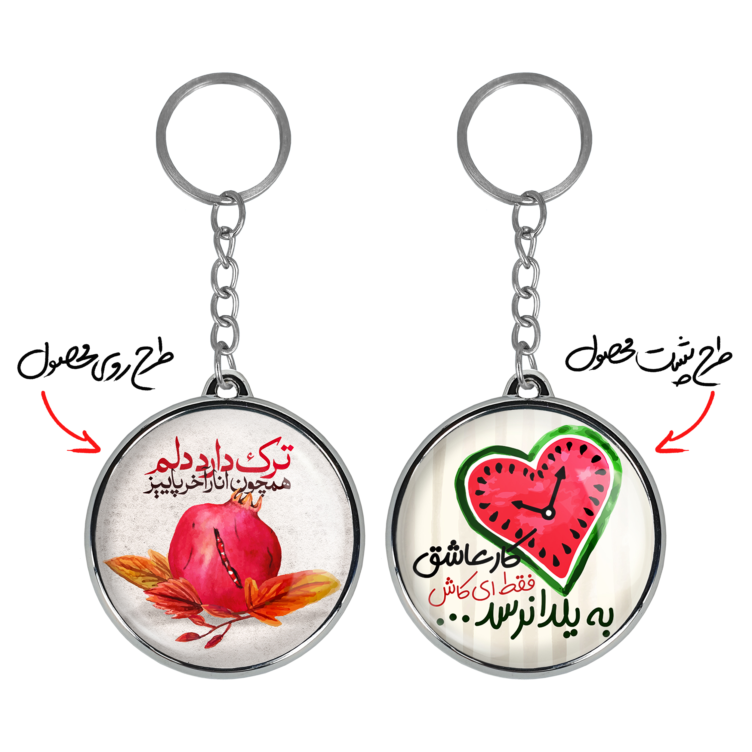 جاکلیدی دوطرفه شب یلدا خندالو محصولی کاربردی و جدید است که در هر دو سمت محصول، تصویری متفاوت اما از یک موضوع چاپ شده و تفاوت اصلی آن با جاکلیدی های یک طرفه در همین است که هر دو سمت پشت و روی جاکلیدی، طرحی دیدنی و جذاب دارد.