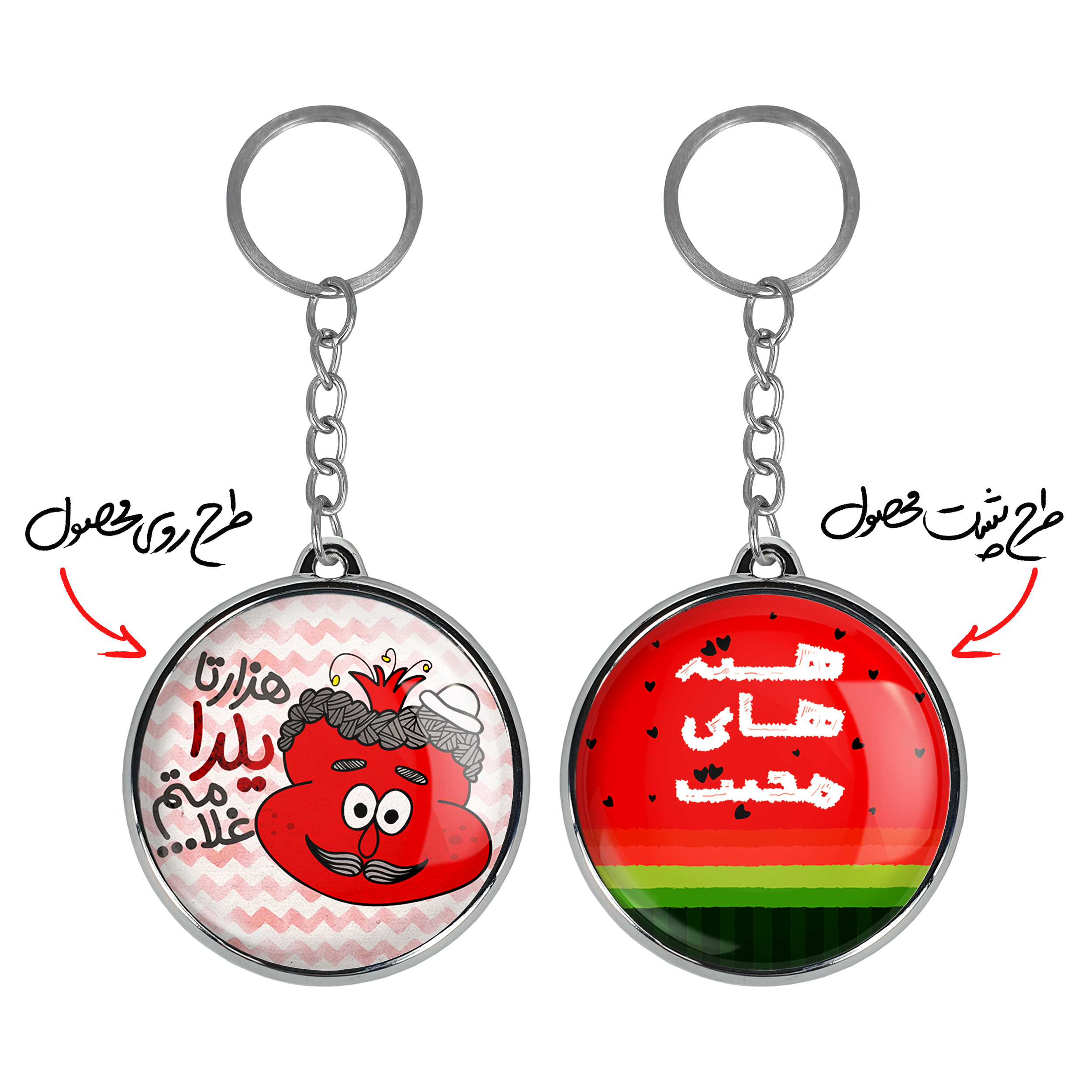 جاکلیدی دوطرفه شب یلدا خندالو محصولی کاربردی و جدید است که در هر دو سمت محصول، تصویری متفاوت اما از یک موضوع چاپ شده و تفاوت اصلی آن با جاکلیدی های یک طرفه در همین است که هر دو سمت پشت و روی جاکلیدی، طرحی دیدنی و جذاب دارد.