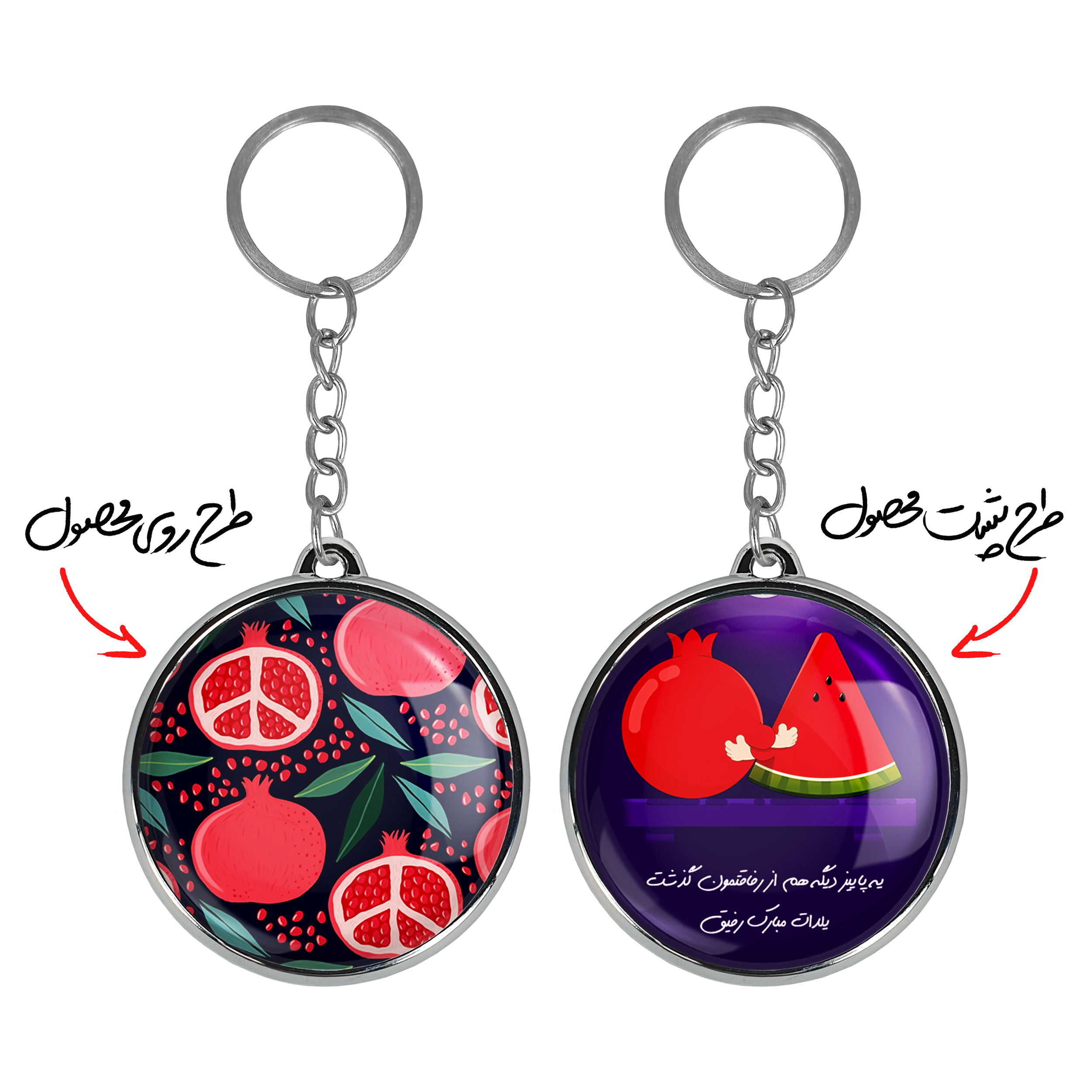 جاکلیدی دوطرفه شب یلدا خندالو محصولی کاربردی و جدید است که در هر دو سمت محصول، تصویری متفاوت اما از یک موضوع چاپ شده و تفاوت اصلی آن با جاکلیدی های یک طرفه در همین است که هر دو سمت پشت و روی جاکلیدی، طرحی دیدنی و جذاب دارد.