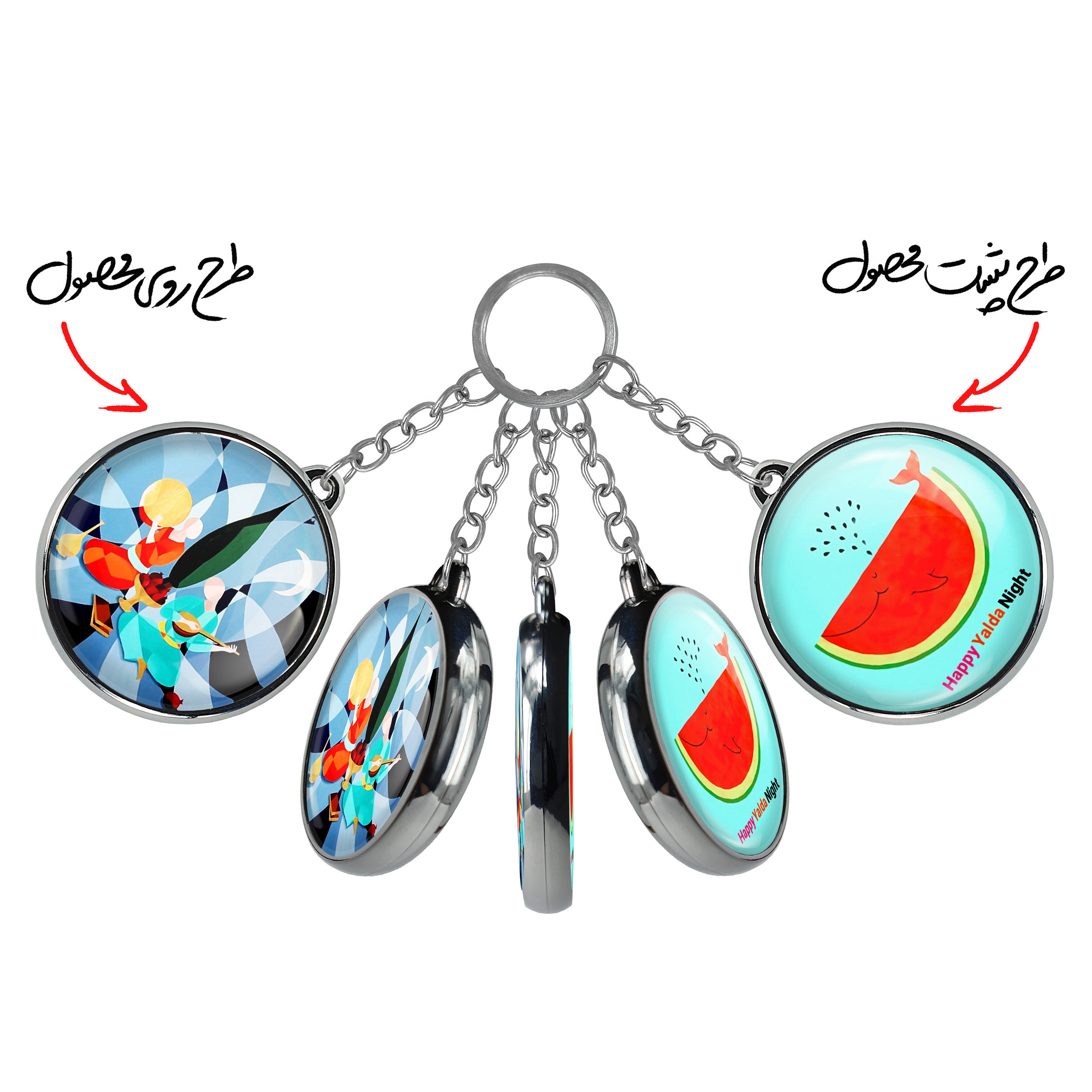 جاکلیدی دوطرفه شب یلدا خندالو محصولی کاربردی و جدید است که در هر دو سمت محصول، تصویری متفاوت اما از یک موضوع چاپ شده و تفاوت اصلی آن با جاکلیدی های یک طرفه در همین است که هر دو سمت پشت و روی جاکلیدی، طرحی دیدنی و جذاب دارد.