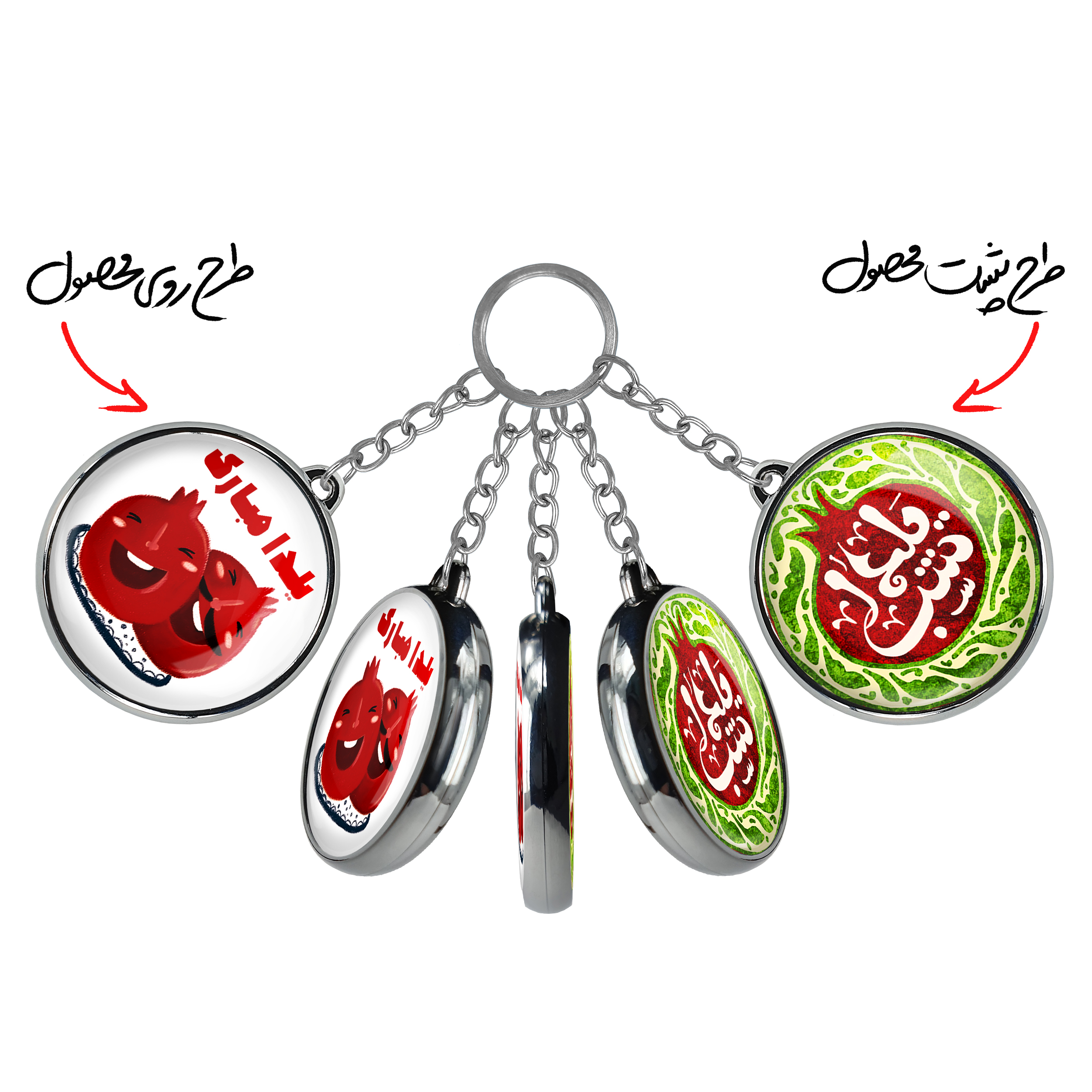 جاکلیدی دوطرفه شب یلدا خندالو محصولی کاربردی و جدید است که در هر دو سمت محصول، تصویری متفاوت اما از یک موضوع چاپ شده و تفاوت اصلی آن با جاکلیدی های یک طرفه در همین است که هر دو سمت پشت و روی جاکلیدی، طرحی دیدنی و جذاب دارد.