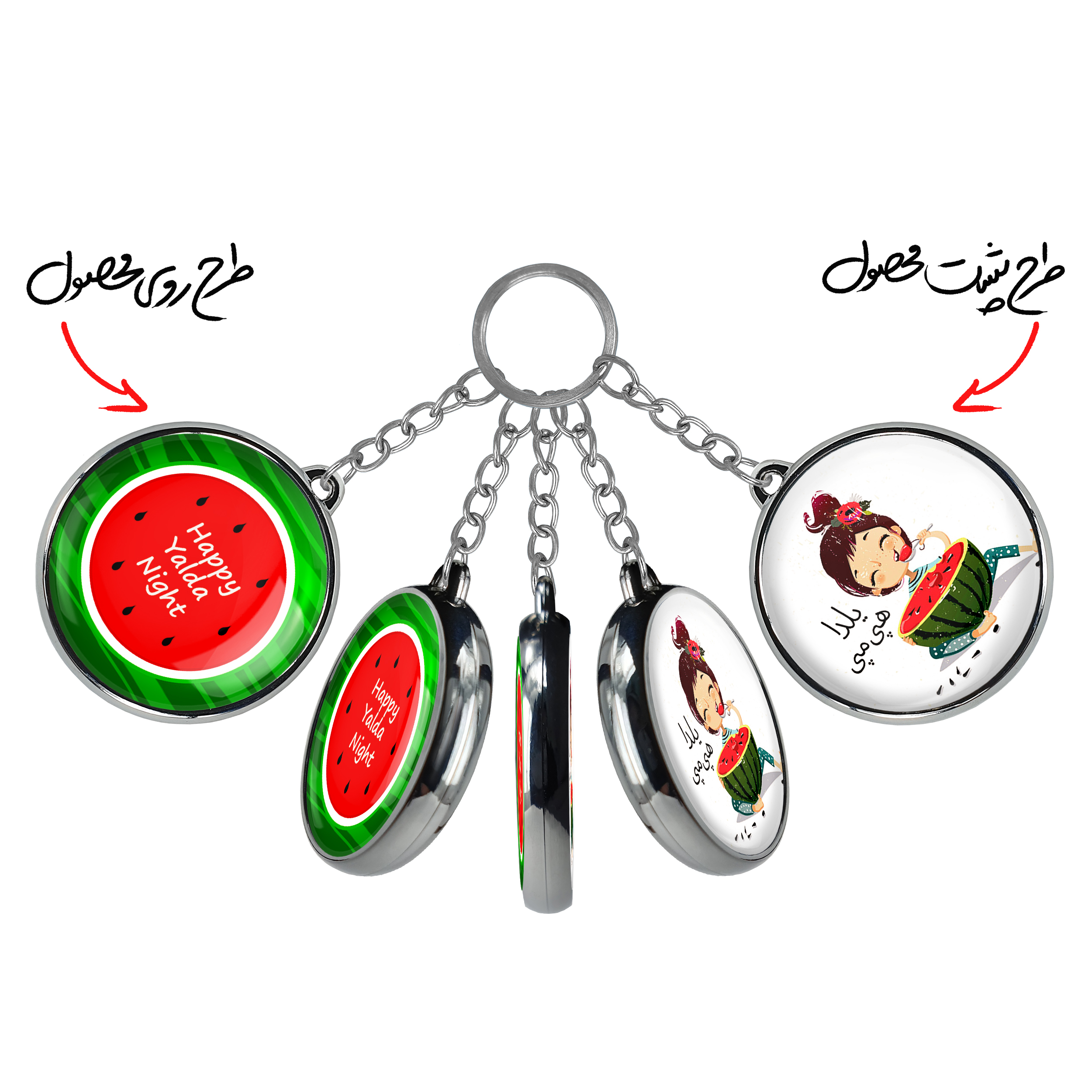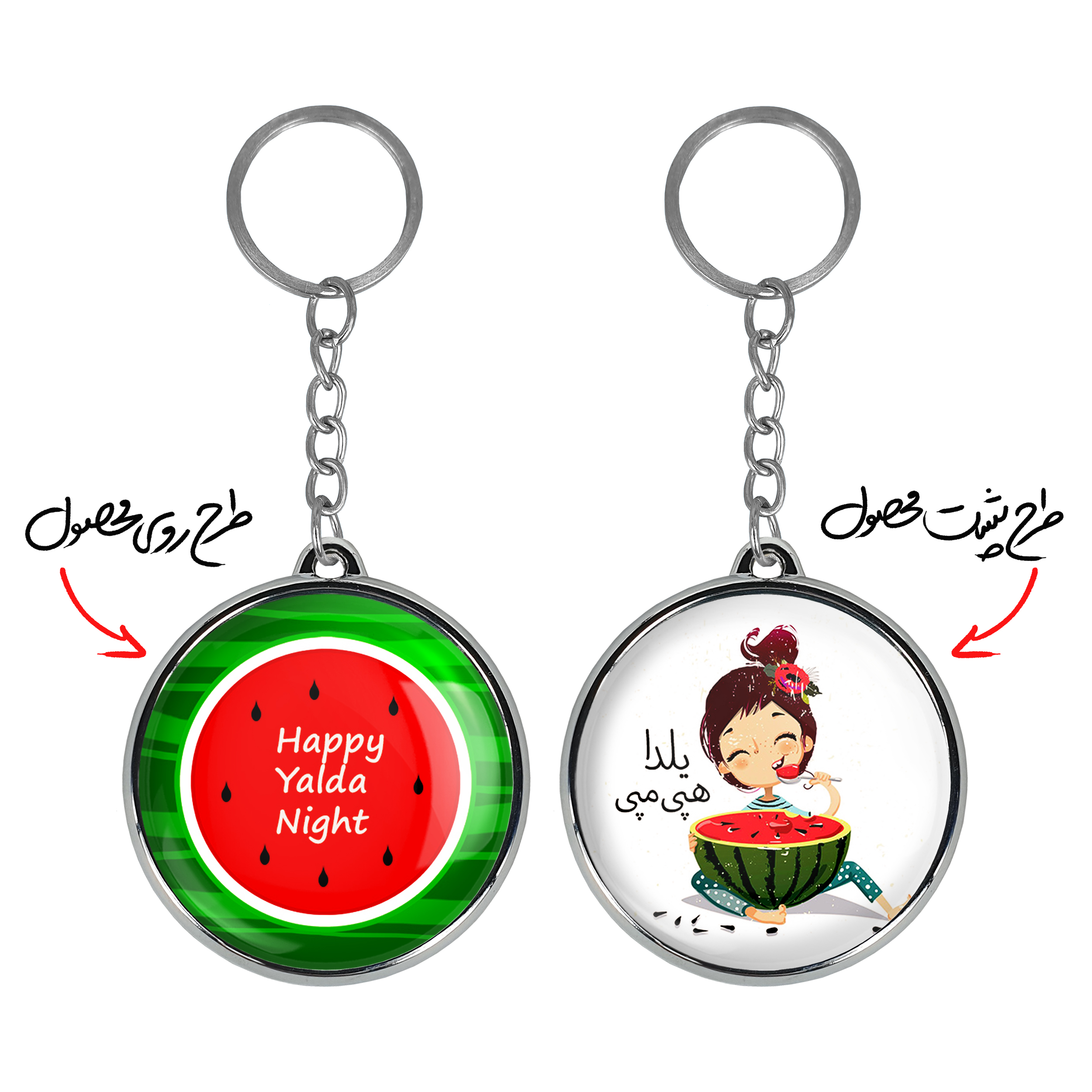جاکلیدی دوطرفه شب یلدا خندالو محصولی کاربردی و جدید است که در هر دو سمت محصول، تصویری متفاوت اما از یک موضوع چاپ شده و تفاوت اصلی آن با جاکلیدی های یک طرفه در همین است که هر دو سمت پشت و روی جاکلیدی، طرحی دیدنی و جذاب دارد.