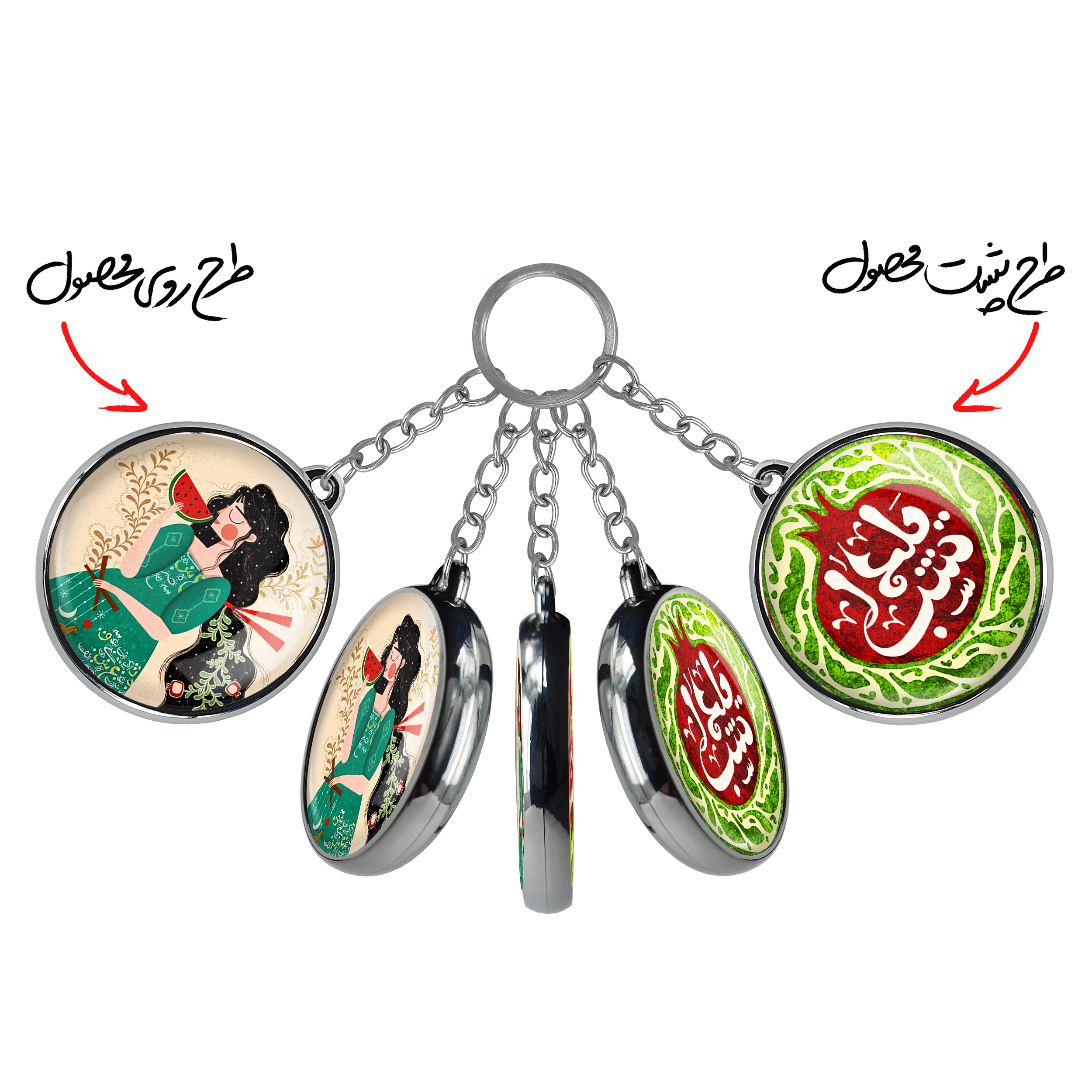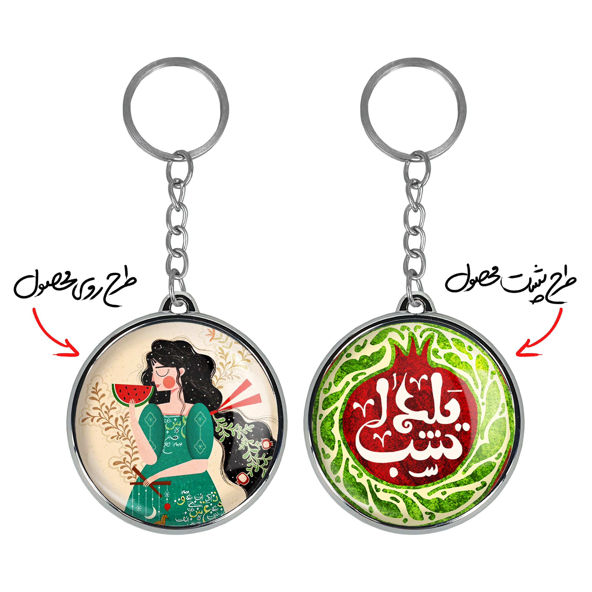 جاکلیدی دوطرفه شب یلدا خندالو محصولی کاربردی و جدید است که در هر دو سمت محصول، تصویری متفاوت اما از یک موضوع چاپ شده و تفاوت اصلی آن با جاکلیدی های یک طرفه در همین است که هر دو سمت پشت و روی جاکلیدی، طرحی دیدنی و جذاب دارد.