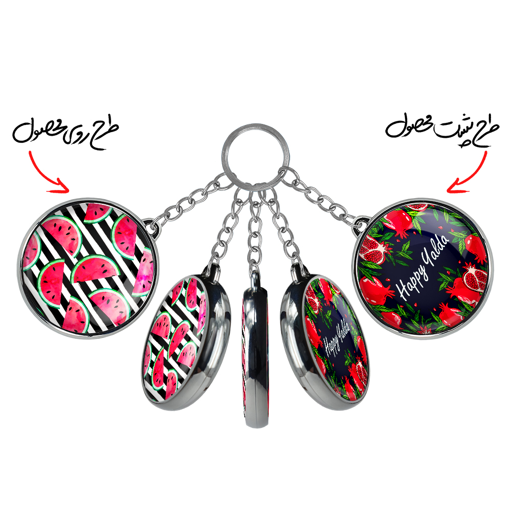 جاکلیدی دوطرفه شب یلدا خندالو محصولی کاربردی و جدید است که در هر دو سمت محصول، تصویری متفاوت اما از یک موضوع چاپ شده و تفاوت اصلی آن با جاکلیدی های یک طرفه در همین است که هر دو سمت پشت و روی جاکلیدی، طرحی دیدنی و جذاب دارد.