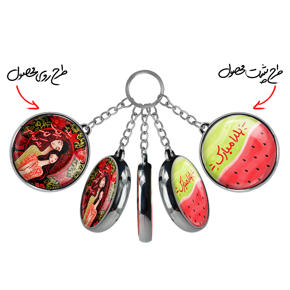 جاکلیدی دوطرفه شب یلدا خندالو محصولی کاربردی و جدید است که در هر دو سمت محصول، تصویری متفاوت اما از یک موضوع چاپ شده و تفاوت اصلی آن با جاکلیدی های یک طرفه در همین است که هر دو سمت پشت و روی جاکلیدی، طرحی دیدنی و جذاب دارد.