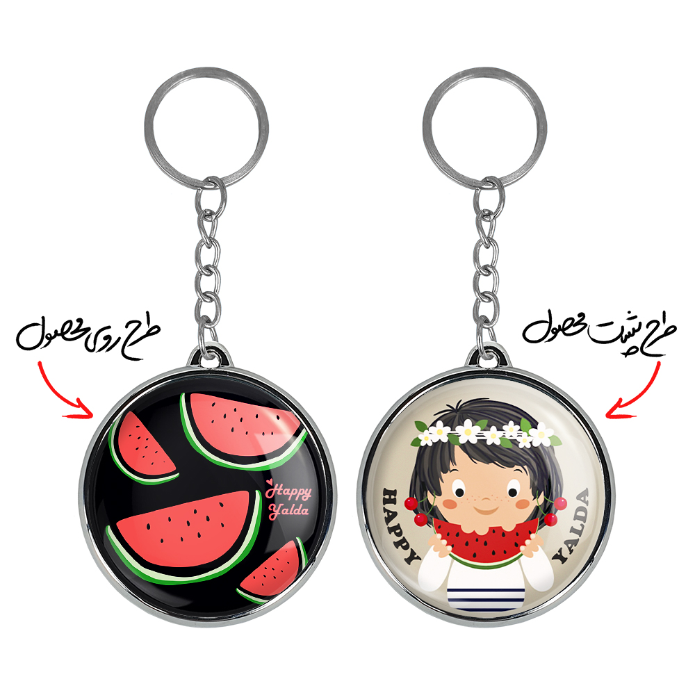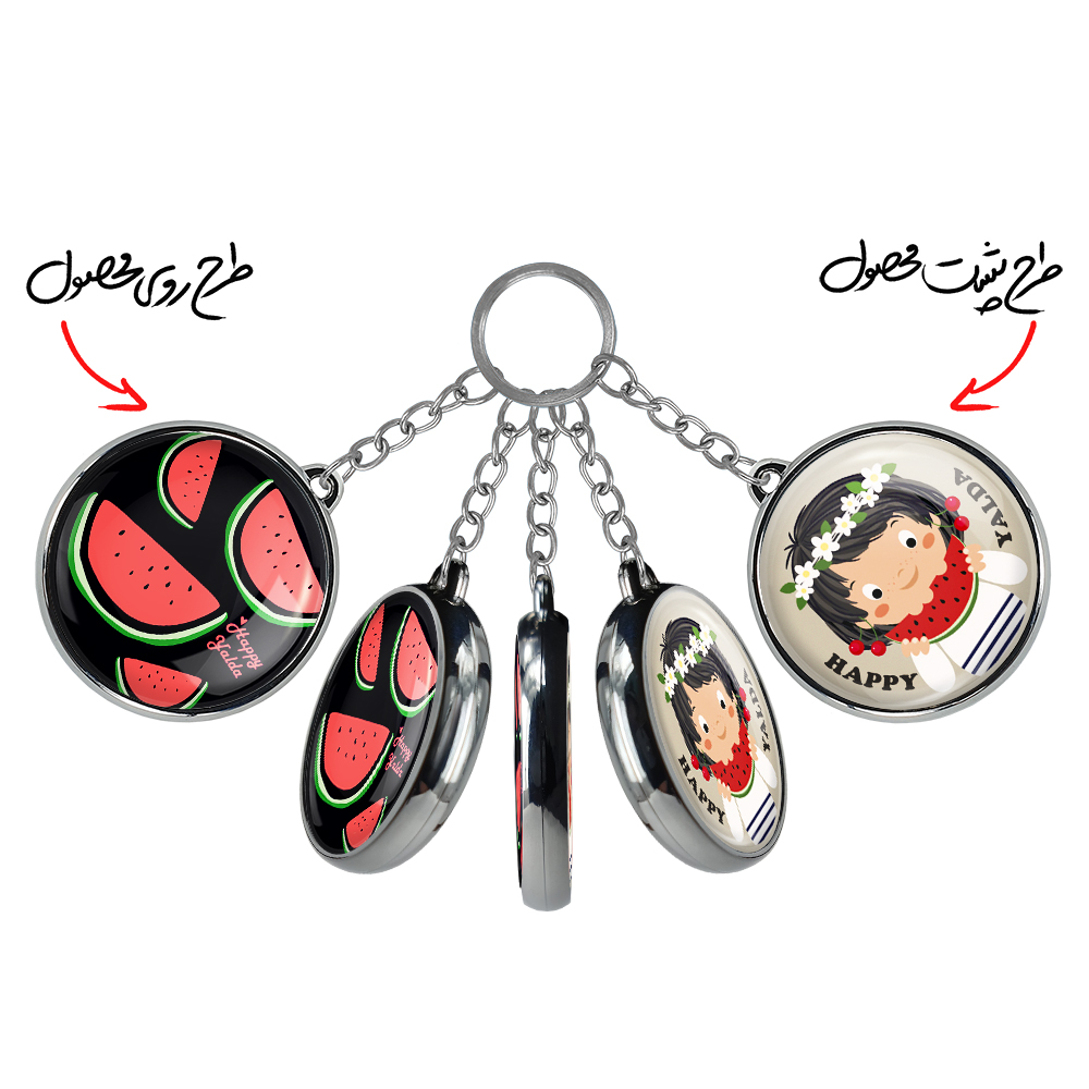 جاکلیدی دوطرفه شب یلدا خندالو محصولی کاربردی و جدید است که در هر دو سمت محصول، تصویری متفاوت اما از یک موضوع چاپ شده و تفاوت اصلی آن با جاکلیدی های یک طرفه در همین است که هر دو سمت پشت و روی جاکلیدی، طرحی دیدنی و جذاب دارد.