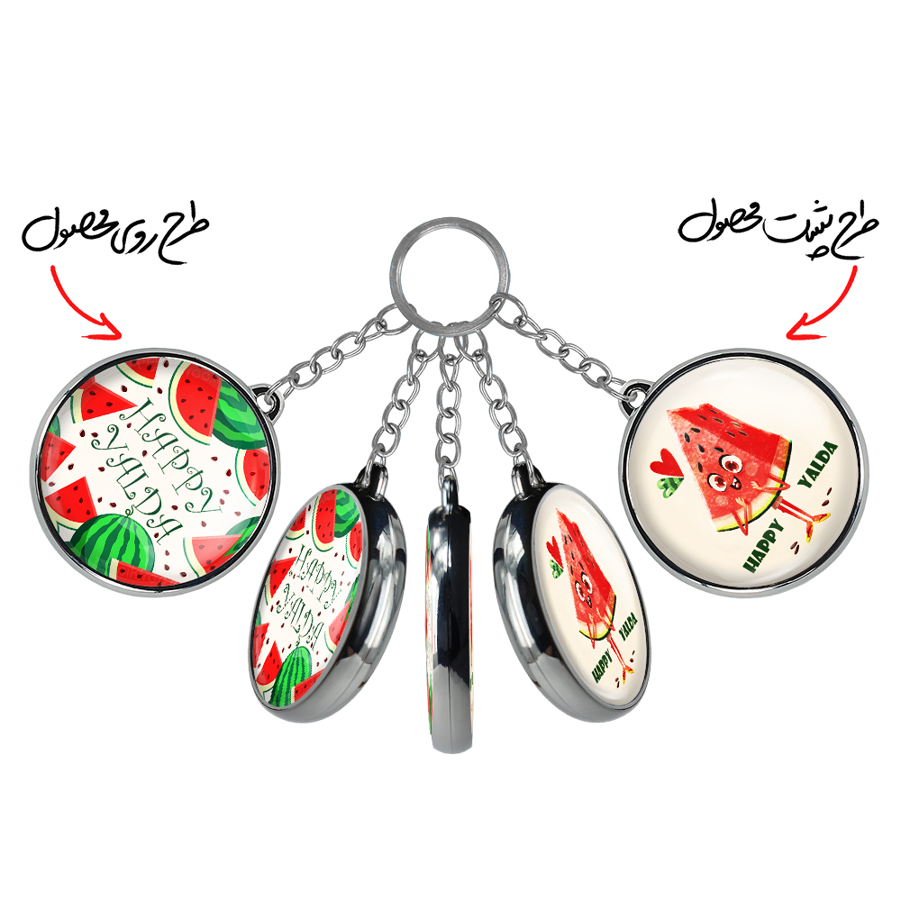 جاکلیدی دوطرفه شب یلدا خندالو محصولی کاربردی و جدید است که در هر دو سمت محصول، تصویری متفاوت اما از یک موضوع چاپ شده و تفاوت اصلی آن با جاکلیدی های یک طرفه در همین است که هر دو سمت پشت و روی جاکلیدی، طرحی دیدنی و جذاب دارد.