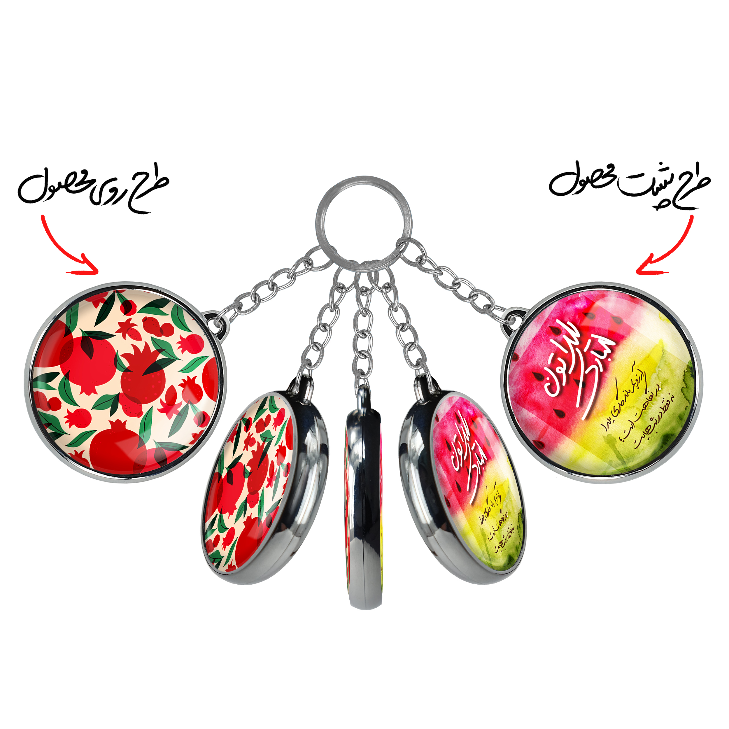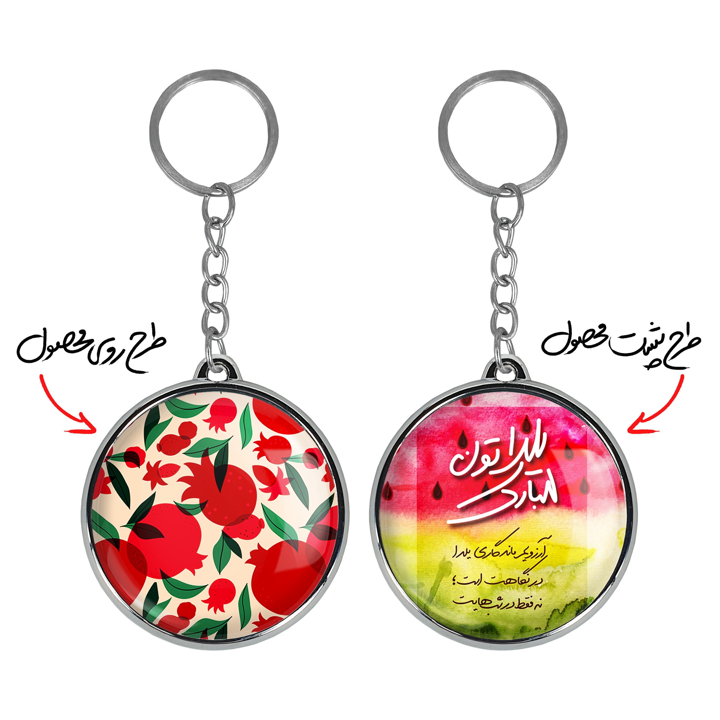 جاکلیدی دوطرفه شب یلداخندالو محصولی کاربردی و جدید است که در هر دو سمت محصول، تصویری متفاوت اما از یک موضوع چاپ شده و تفاوت اصلی آن با جاکلیدی های یک طرفه در همین است که هر دو سمت پشت و روی جاکلیدی، طرحی دیدنی و جذاب دارد.