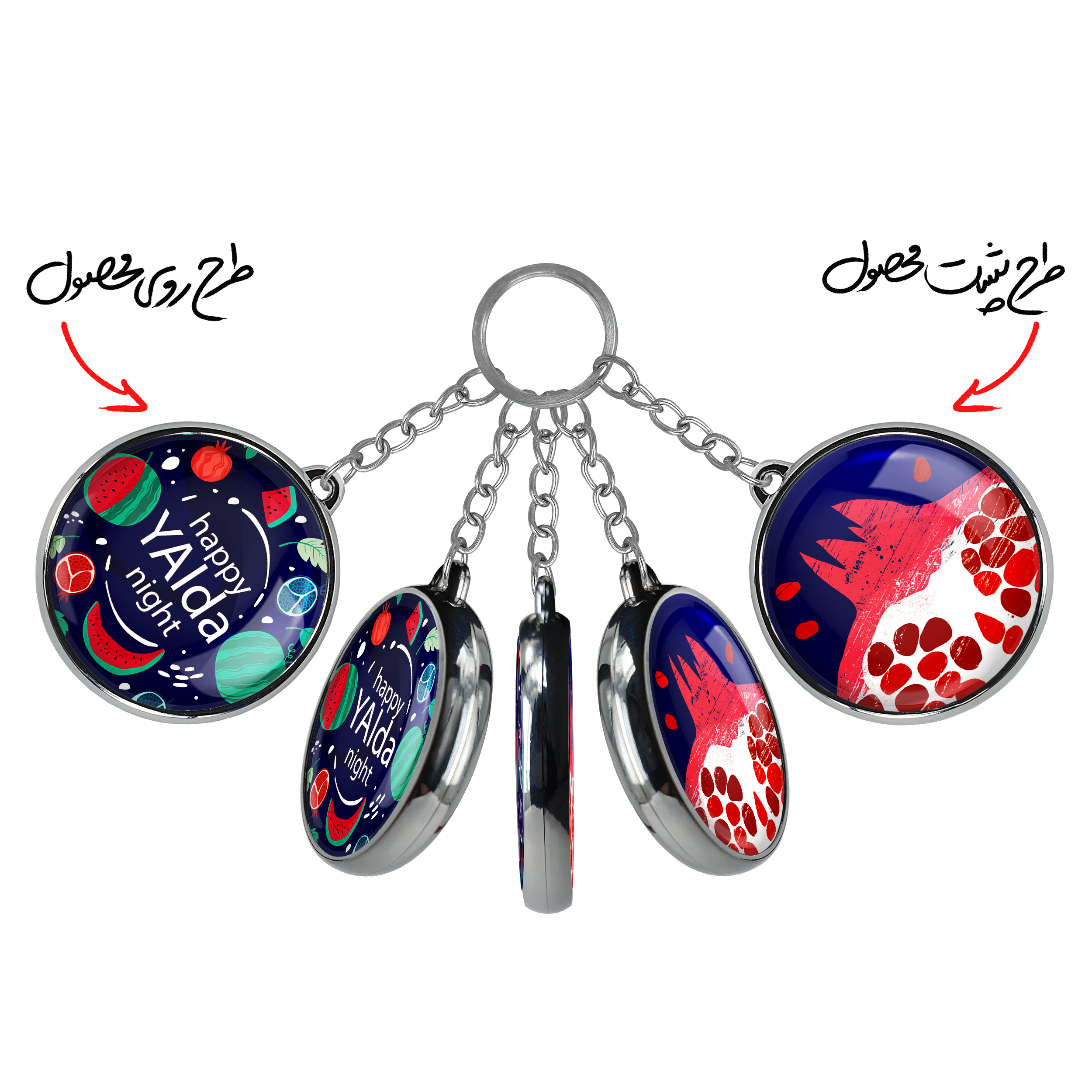 جاکلیدی دوطرفه شب یلدا خندالو محصولی کاربردی و جدید است که در هر دو سمت محصول، تصویری متفاوت اما از یک موضوع چاپ شده و تفاوت اصلی آن با جاکلیدی های یک طرفه در همین است که هر دو سمت پشت و روی جاکلیدی، طرحی دیدنی و جذاب دارد.