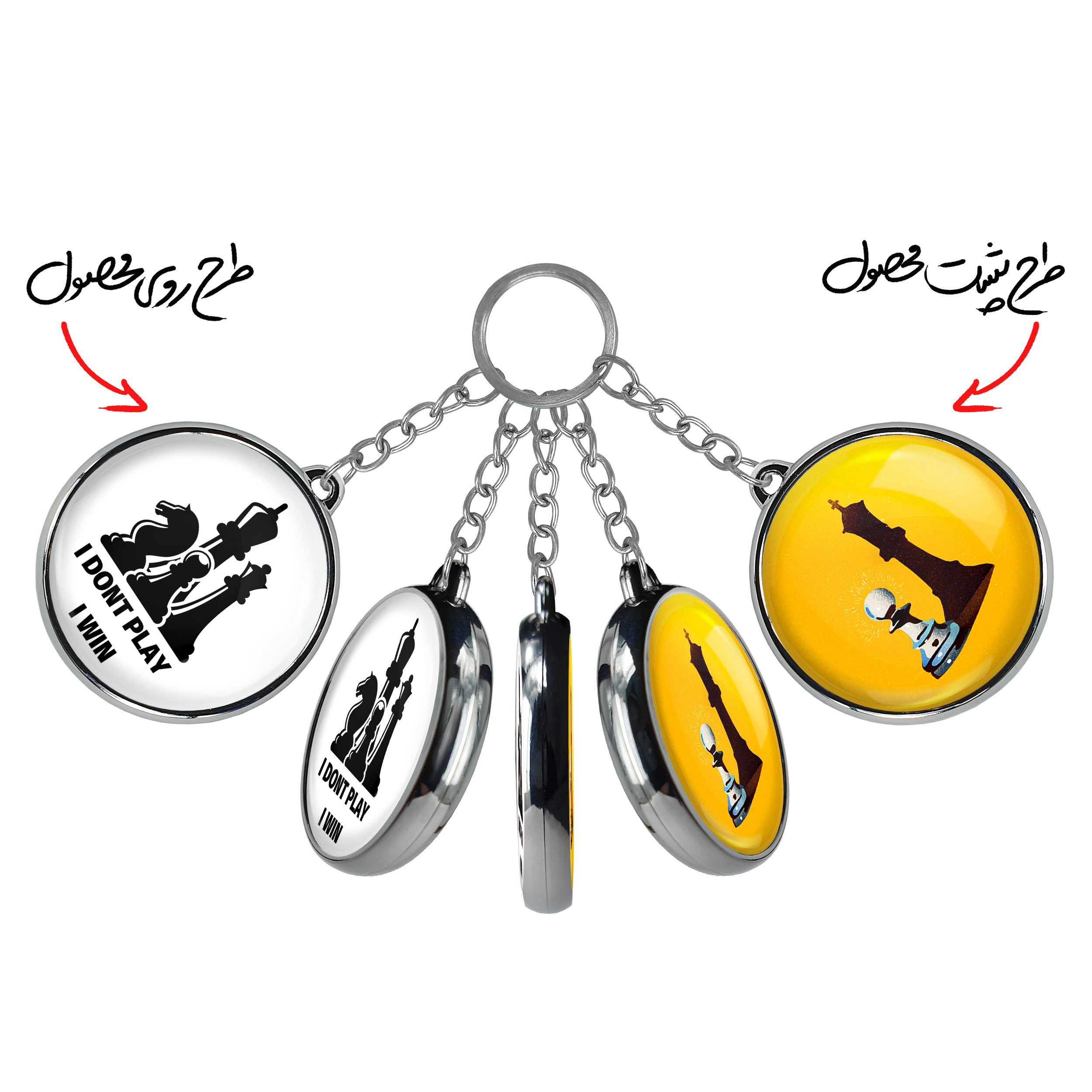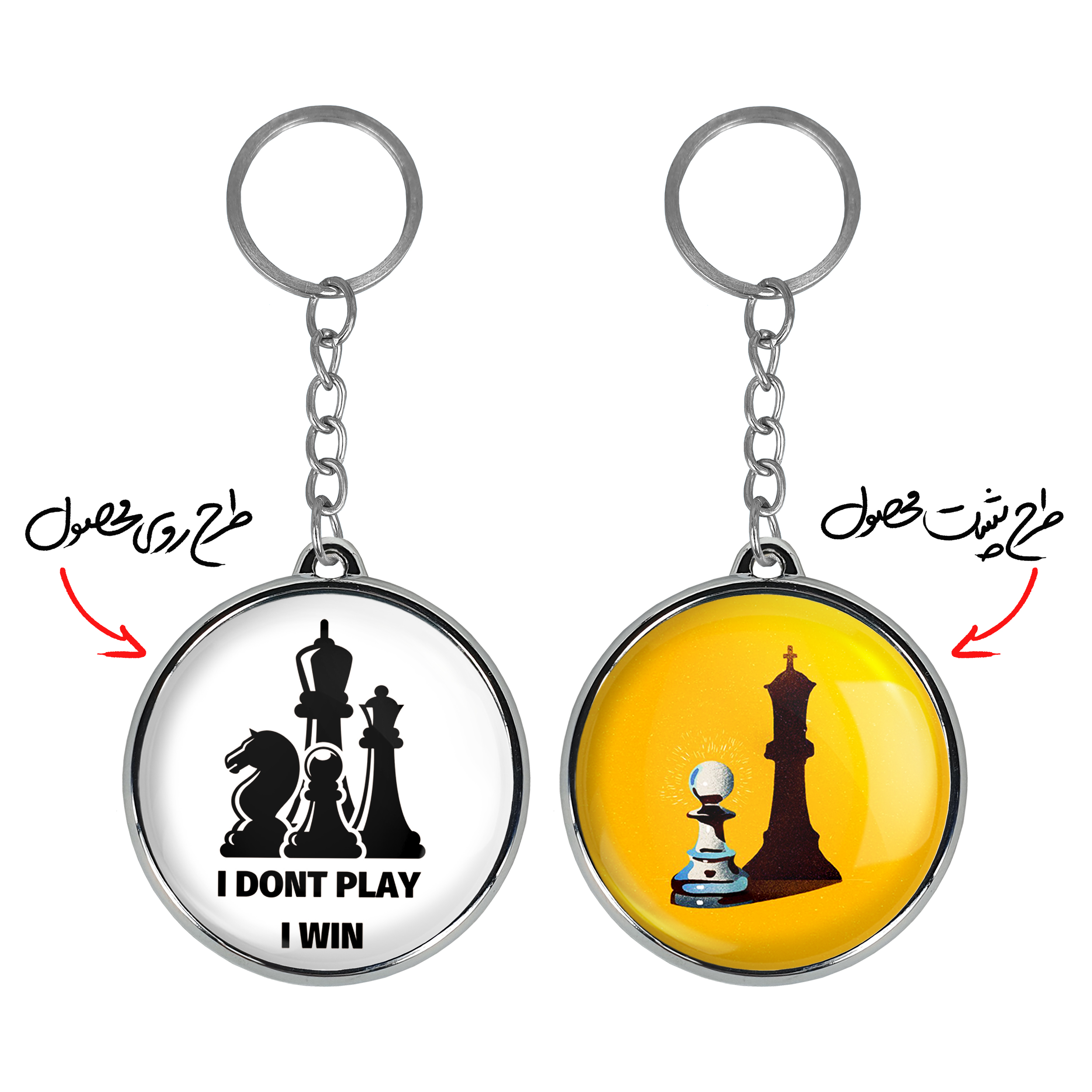 جاکلیدی دوطرفه شطرنجخندالو محصولی کاربردی و جدید است که در هر دو سمت محصول، تصویری متفاوت اما از یک موضوع چاپ شده و تفاوت اصلی آن با جاکلیدی های یک طرفه در همین است که هر دو سمت پشت و روی جاکلیدی، طرحی دیدنی و جذاب دارد.