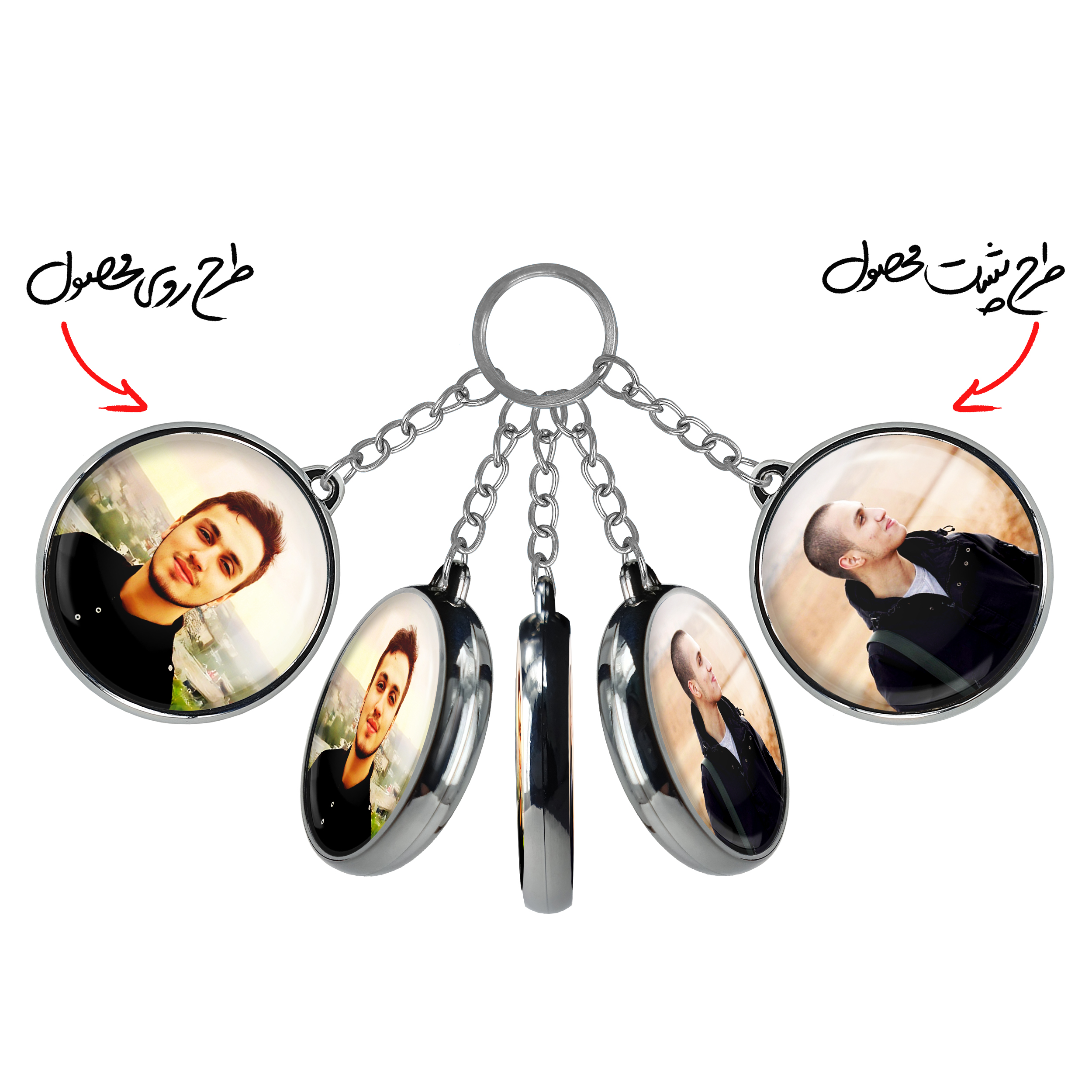 جاکلیدی دوطرفه شهید جهاد مغنیهخندالو محصولی کاربردی و جدید است که در هر دو سمت محصول، تصویری متفاوت اما از یک موضوع چاپ شده و تفاوت اصلی آن با جاکلیدی های یک طرفه در همین است که هر دو سمت پشت و روی جاکلیدی، طرحی دیدنی و جذاب دارد. همچنین رینگ بکار برده شده برای دور طرح ها آبکاری کروم درجه یک و رنگ ثابت است و برخلاف سایر محصولات مشابه، از رنگ های متفرقه و یا سفید استفاده نشده، که این مهم، زیبایی محصول نهایی را چند برابر کرده است. جاکلیدی های دوطرفه شهید جهاد مغنیهبا استفاده از روکش سلفون براق ضدخش تولید شده که خاصیت ضدخش بودن آن عمر مفید استفاده از جاکلیدی ها را افزایش میدهد. چاپ جاکلیدی ها با دستگاه های استاندارد و با بهترین سطح کیفیت صورت گرفته و طرح با شفافیتی مثال زدنی و با سلفون چسبی تولید شده است که باعث شده محصول نهایی بدون شکست نور دیده شود. همچنین بسته بندی جذاب و مینیمال جاکلیدی دوطرفه شهید جهاد مغنیه، آنها را محصولی مناسب هدیه کرده است. زنجیر و حلقه بکار برده شده در جاکلیدی خندالو از نوع حلقه ضخیم و محکم بوده و حین استفاده آسیب نمی بیند.