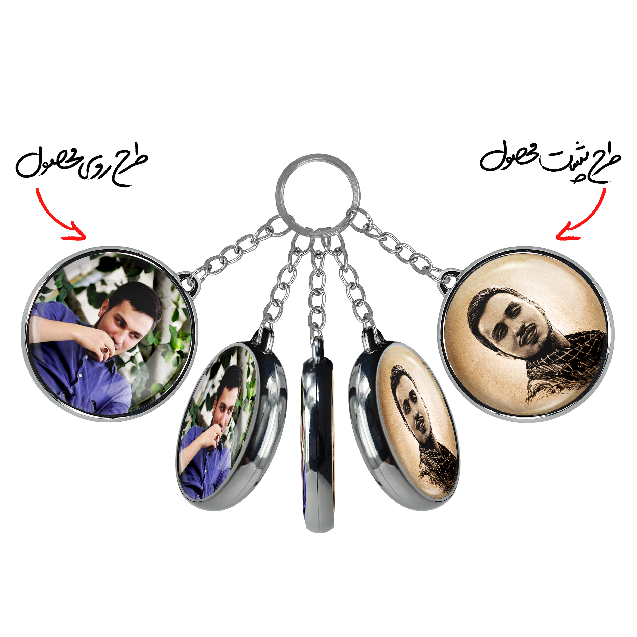 جاکلیدی دوطرفه شهید جهاد مغنیهخندالو محصولی کاربردی و جدید است که در هر دو سمت محصول، تصویری متفاوت اما از یک موضوع چاپ شده و تفاوت اصلی آن با جاکلیدی های یک طرفه در همین است که هر دو سمت پشت و روی جاکلیدی، طرحی دیدنی و جذاب دارد. همچنین رینگ بکار برده شده برای دور طرح ها آبکاری کروم درجه یک و رنگ ثابت است و برخلاف سایر محصولات مشابه، از رنگ های متفرقه و یا سفید استفاده نشده، که این مهم، زیبایی محصول نهایی را چند برابر کرده است. جاکلیدی های دوطرفه شهید جهاد مغنیهبا استفاده از روکش سلفون براق ضدخش تولید شده که خاصیت ضدخش بودن آن عمر مفید استفاده از جاکلیدی ها را افزایش میدهد. چاپ جاکلیدی ها با دستگاه های استاندارد و با بهترین سطح کیفیت صورت گرفته و طرح با شفافیتی مثال زدنی و با سلفون چسبی تولید شده است که باعث شده محصول نهایی بدون شکست نور دیده شود. همچنین بسته بندی جذاب و مینیمال جاکلیدی دوطرفه شهید جهاد مغنیه، آنها را محصولی مناسب هدیه کرده است. زنجیر و حلقه بکار برده شده در جاکلیدی خندالو از نوع حلقه ضخیم و محکم بوده و حین استفاده آسیب نمی بیند.