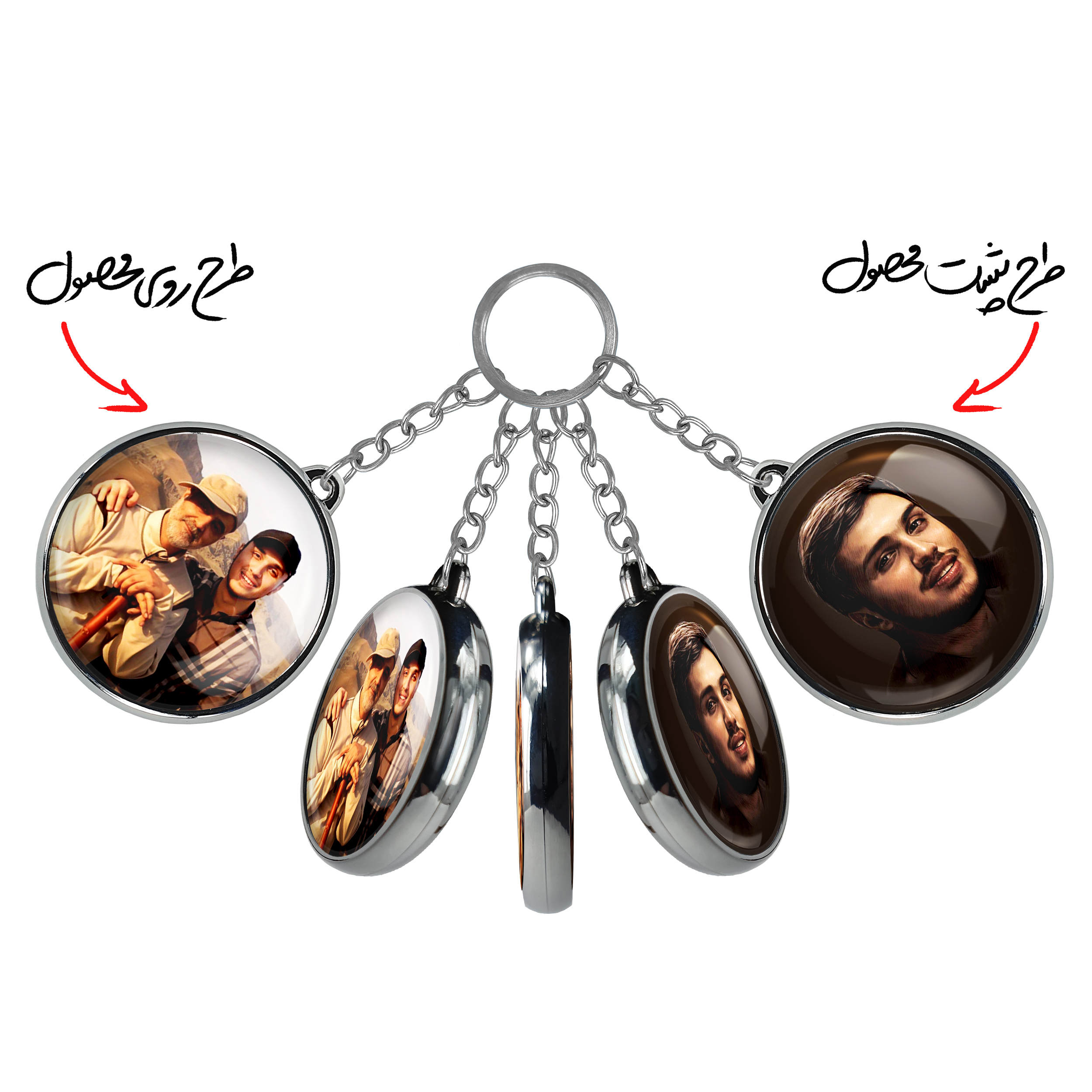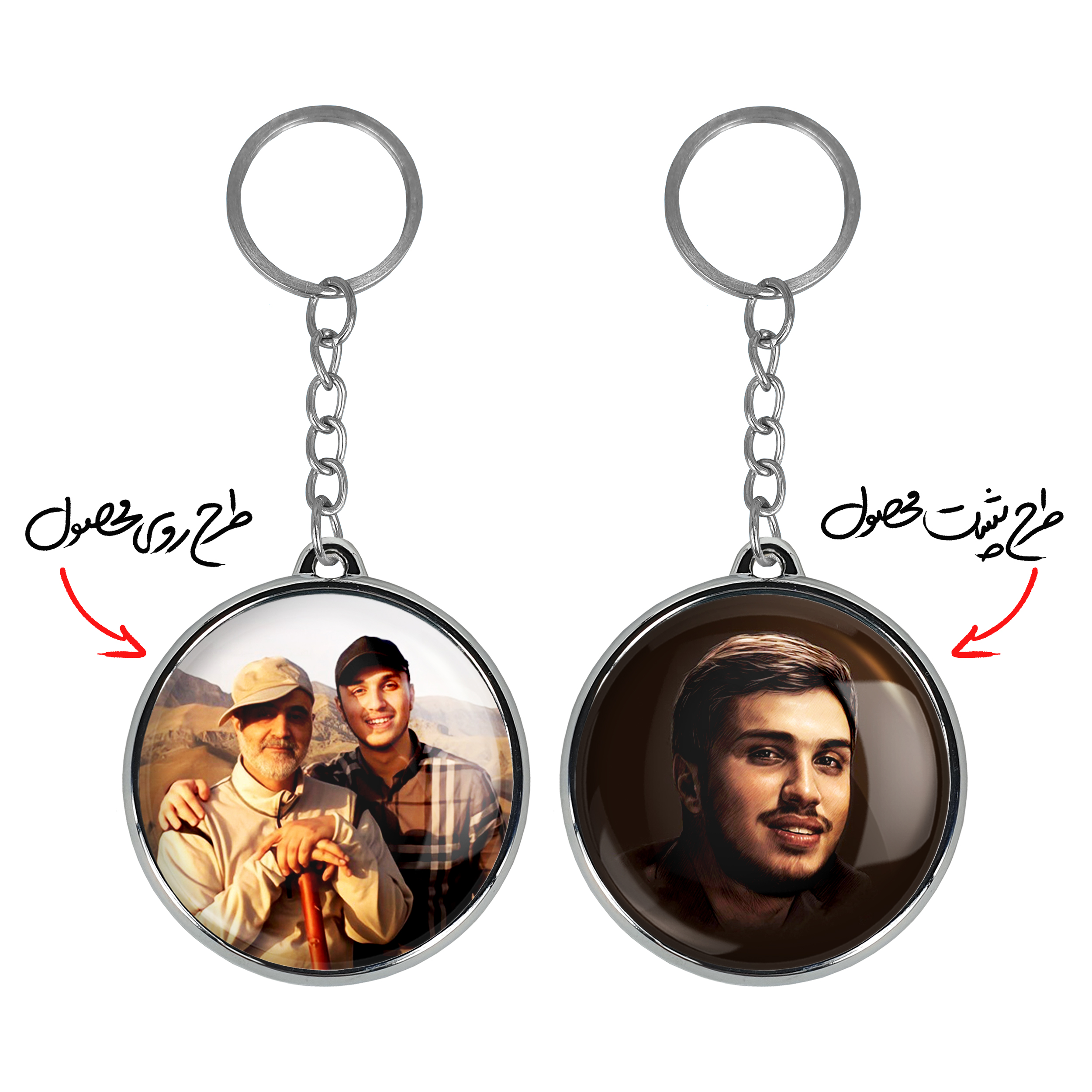 جاکلیدی دوطرفه شهید جهاد مغنیهخندالو محصولی کاربردی و جدید است که در هر دو سمت محصول، تصویری متفاوت اما از یک موضوع چاپ شده و تفاوت اصلی آن با جاکلیدی های یک طرفه در همین است که هر دو سمت پشت و روی جاکلیدی، طرحی دیدنی و جذاب دارد. همچنین رینگ بکار برده شده برای دور طرح ها آبکاری کروم درجه یک و رنگ ثابت است و برخلاف سایر محصولات مشابه، از رنگ های متفرقه و یا سفید استفاده نشده، که این مهم، زیبایی محصول نهایی را چند برابر کرده است. جاکلیدی های دوطرفه شهید جهاد مغنیهبا استفاده از روکش سلفون براق ضدخش تولید شده که خاصیت ضدخش بودن آن عمر مفید استفاده از جاکلیدی ها را افزایش میدهد. چاپ جاکلیدی ها با دستگاه های استاندارد و با بهترین سطح کیفیت صورت گرفته و طرح با شفافیتی مثال زدنی و با سلفون چسبی تولید شده است که باعث شده محصول نهایی بدون شکست نور دیده شود. همچنین بسته بندی جذاب و مینیمال جاکلیدی دوطرفه شهید جهاد مغنیه، آنها را محصولی مناسب هدیه کرده است. زنجیر و حلقه بکار برده شده در جاکلیدی خندالو از نوع حلقه ضخیم و محکم بوده و حین استفاده آسیب نمی بیند.