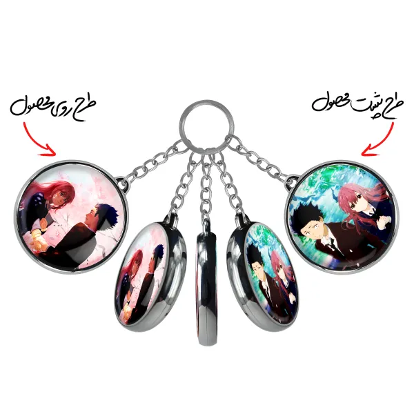 جاکلیدی دوطرفه شوکو نیشیمیا و شویا ایشیدا انیمه سایلنت ویس A Silent Voice خندالو محصولی کاربردی و جدید است که در هر دو سمت محصول، تصویری متفاوت اما از یک موضوع چاپ شده و تفاوت اصلی آن با جاکلیدی های یک طرفه در همین است که هر دو سمت پشت و روی جاکلیدی، طرحی دیدنی و جذاب دارد.