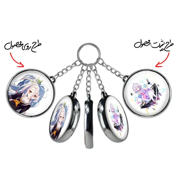 جاکلیدی دوطرفه شیرو انیمه نو گیم نو لایف خندالو محصولی کاربردی و جدید است که در هر دو سمت محصول، تصویری متفاوت اما از یک موضوع چاپ شده و تفاوت اصلی آن با جاکلیدی های یک طرفه در همین است که هر دو سمت پشت و روی جاکلیدی، طرحی دیدنی و جذاب دارد.