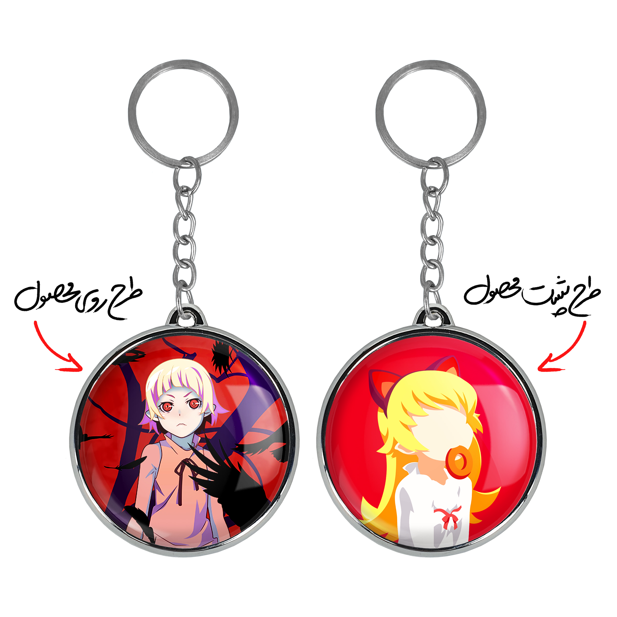 جاکلیدی دوطرفه شینوبو اوشینو انیمه مونوگاتاری خندالو محصولی کاربردی و جدید است که در هر دو سمت محصول، تصویری متفاوت اما از یک موضوع چاپ شده و تفاوت اصلی آن با جاکلیدی های یک طرفه در همین است که هر دو سمت پشت و روی جاکلیدی، طرحی دیدنی و جذاب دارد.