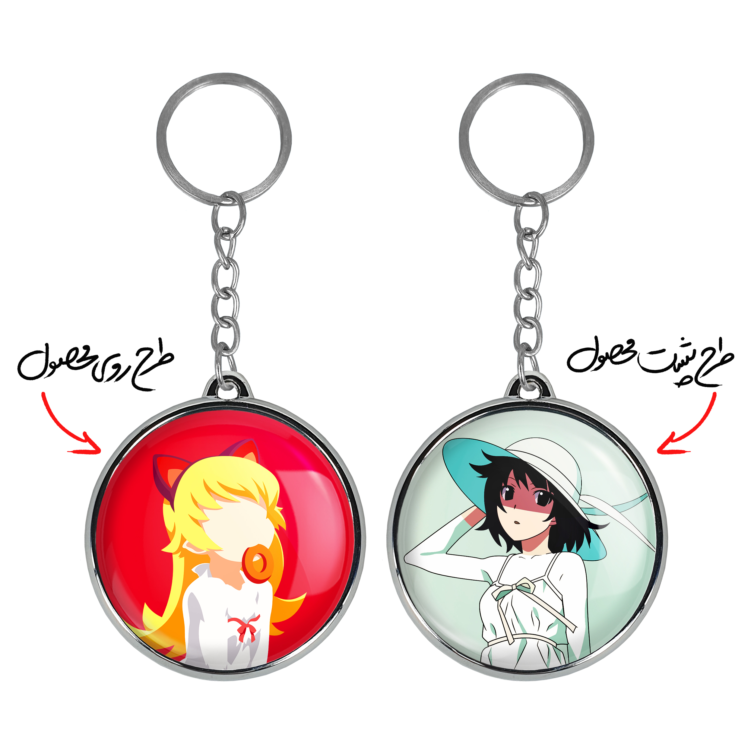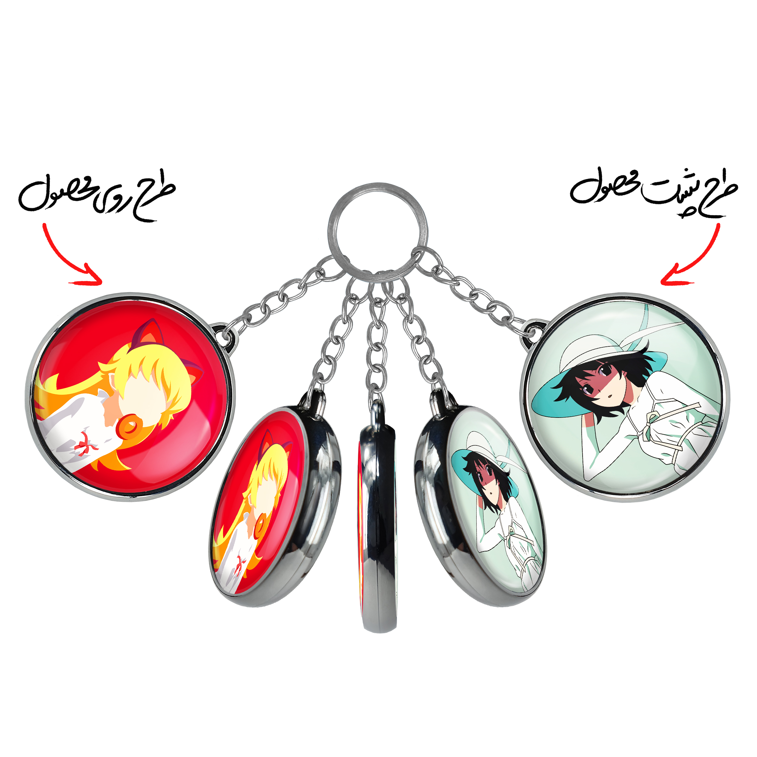 جاکلیدی دوطرفه شینوبو اوشینو انیمه مونوگاتاری خندالو محصولی کاربردی و جدید است که در هر دو سمت محصول، تصویری متفاوت اما از یک موضوع چاپ شده و تفاوت اصلی آن با جاکلیدی های یک طرفه در همین است که هر دو سمت پشت و روی جاکلیدی، طرحی دیدنی و جذاب دارد.