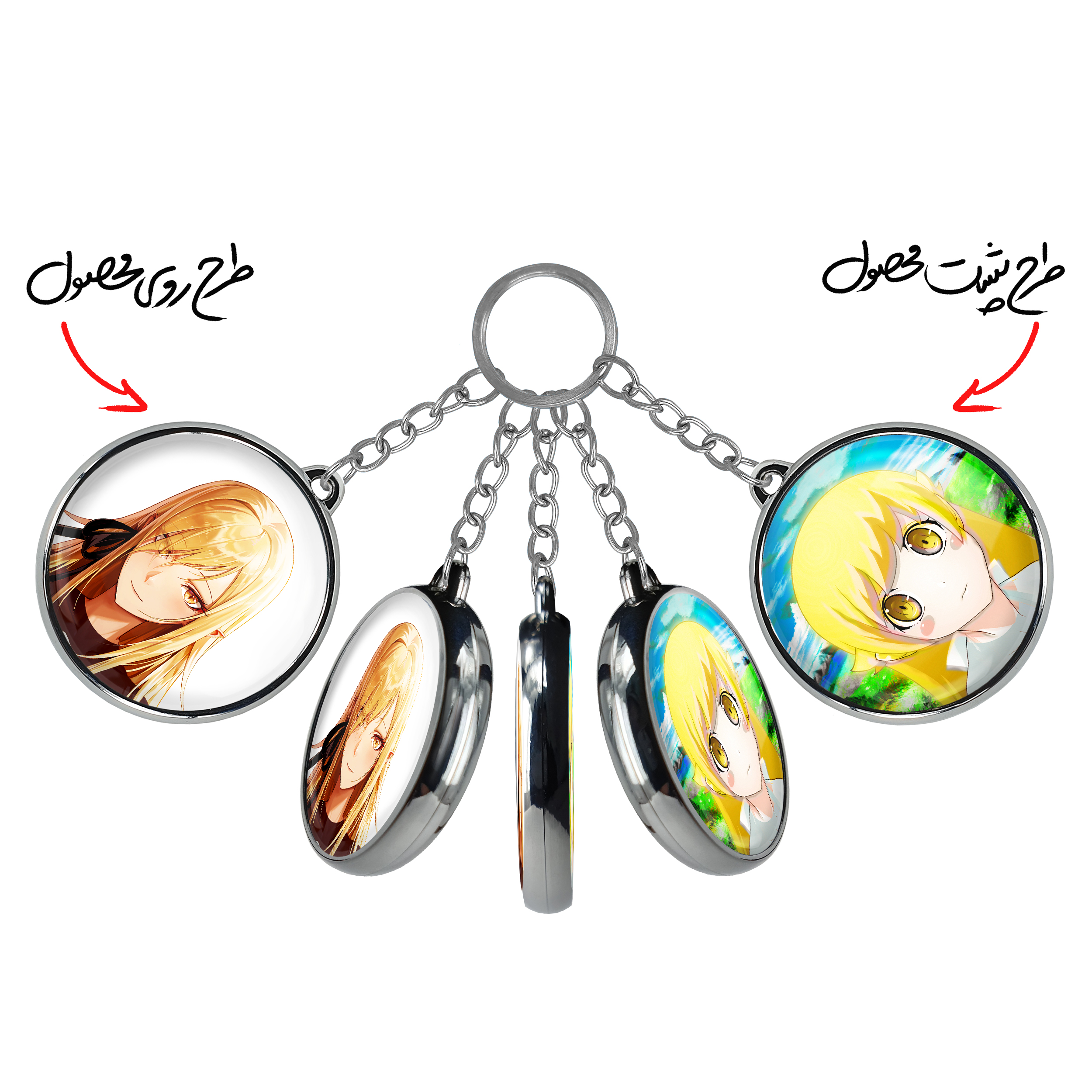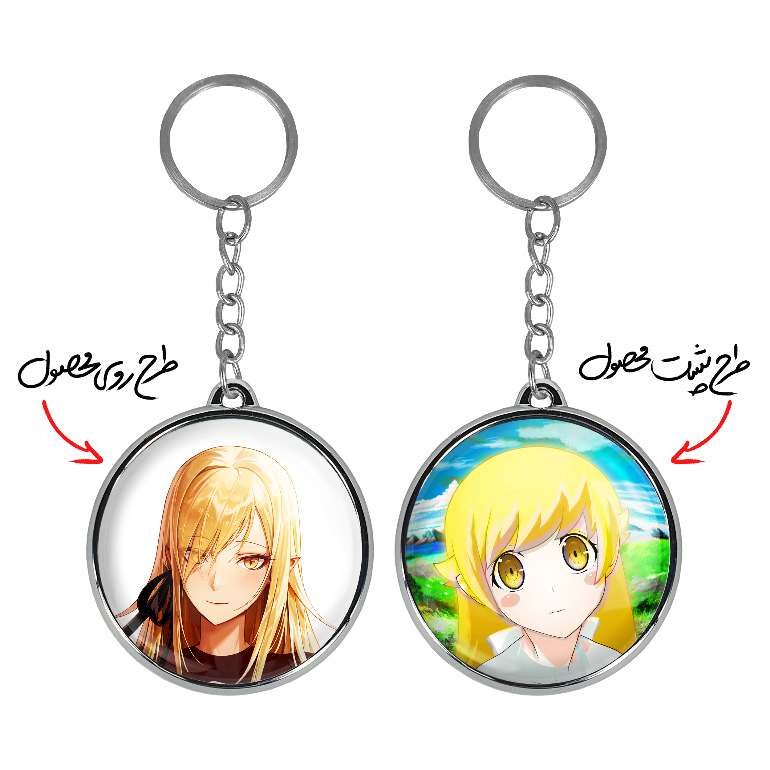 جاکلیدی دوطرفه شینوبو اوشینو انیمه مونوگاتاری خندالو محصولی کاربردی و جدید است که در هر دو سمت محصول، تصویری متفاوت اما از یک موضوع چاپ شده و تفاوت اصلی آن با جاکلیدی های یک طرفه در همین است که هر دو سمت پشت و روی جاکلیدی، طرحی دیدنی و جذاب دارد.