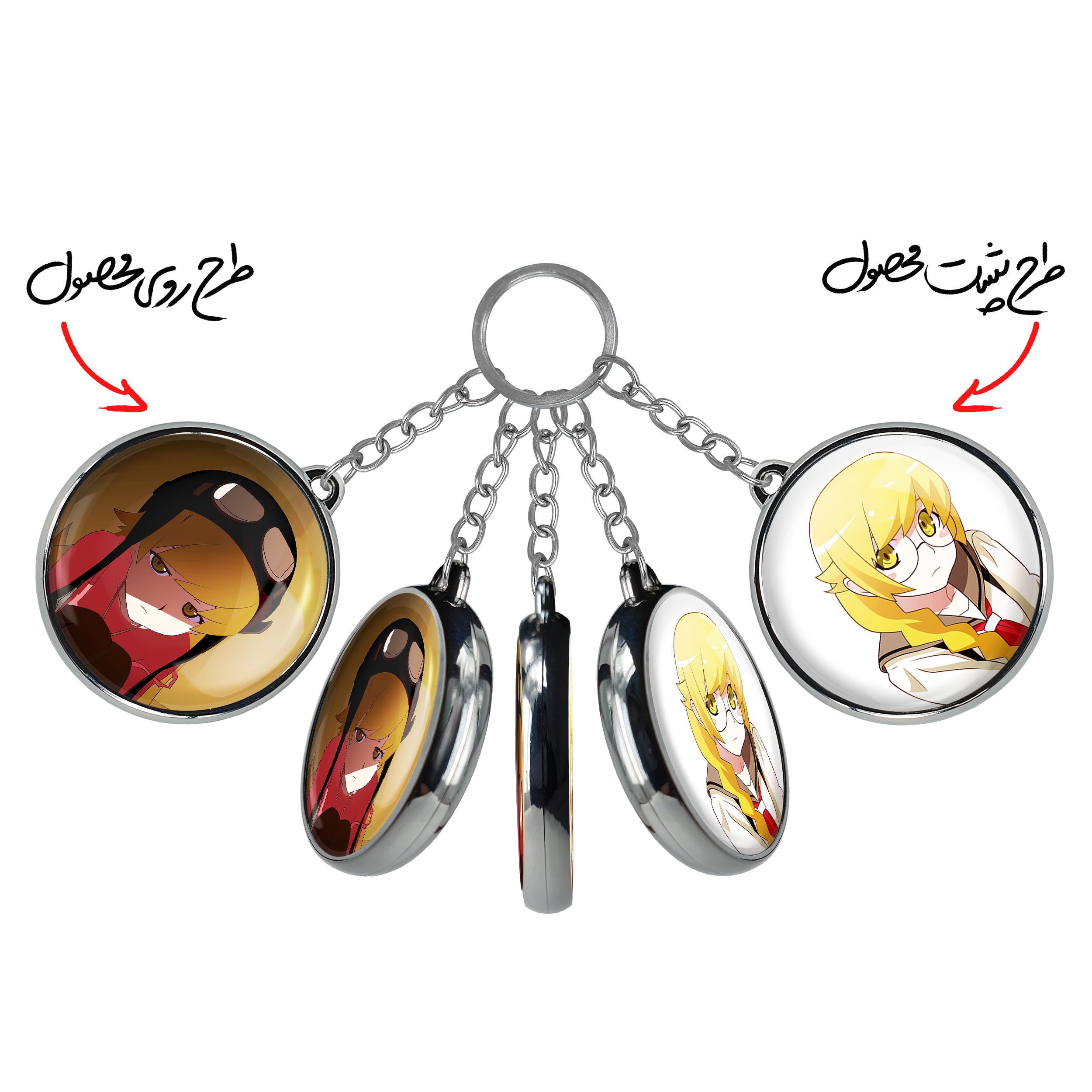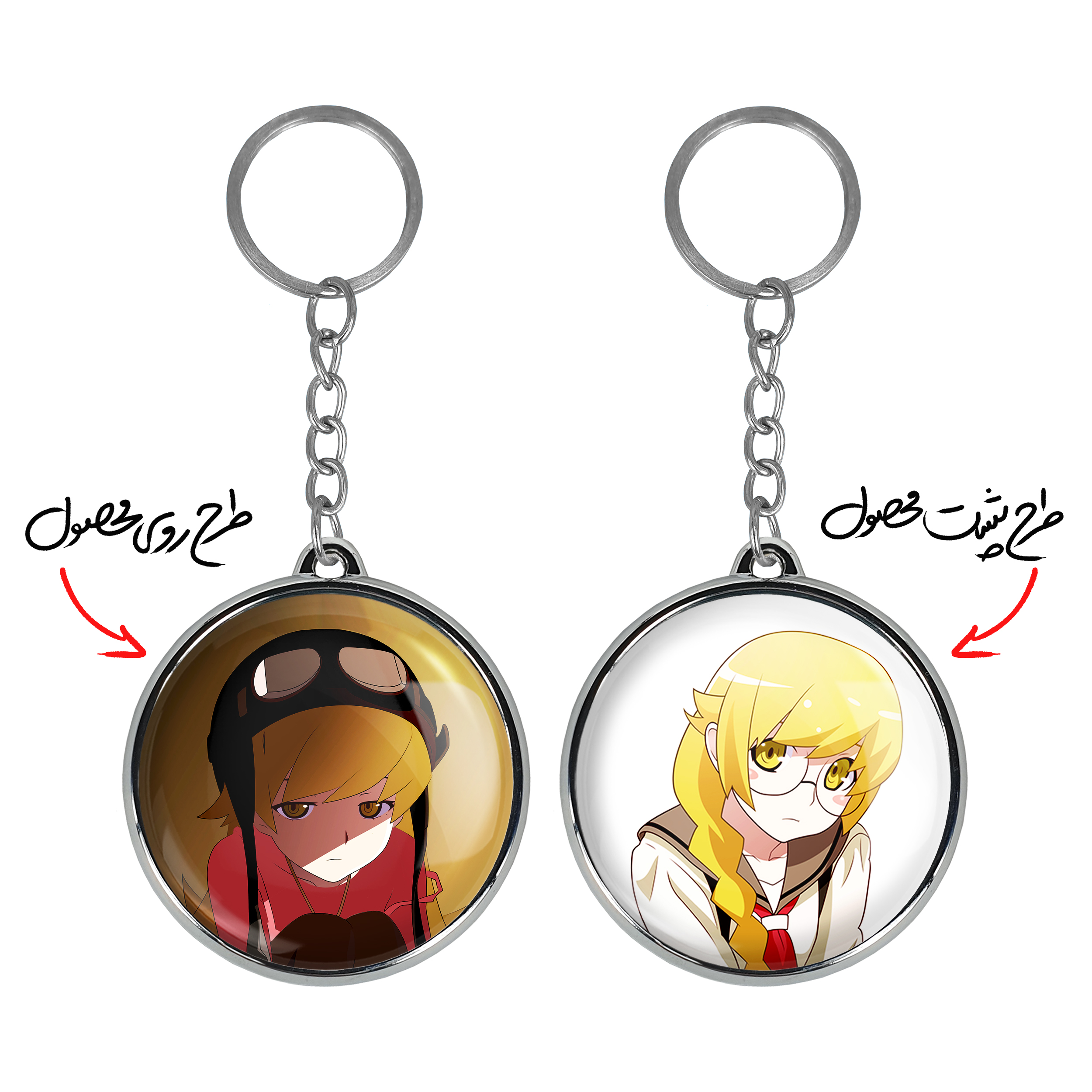 جاکلیدی دوطرفه شینوبو اوشینو انیمه مونوگاتاری خندالو محصولی کاربردی و جدید است که در هر دو سمت محصول، تصویری متفاوت اما از یک موضوع چاپ شده و تفاوت اصلی آن با جاکلیدی های یک طرفه در همین است که هر دو سمت پشت و روی جاکلیدی، طرحی دیدنی و جذاب دارد.