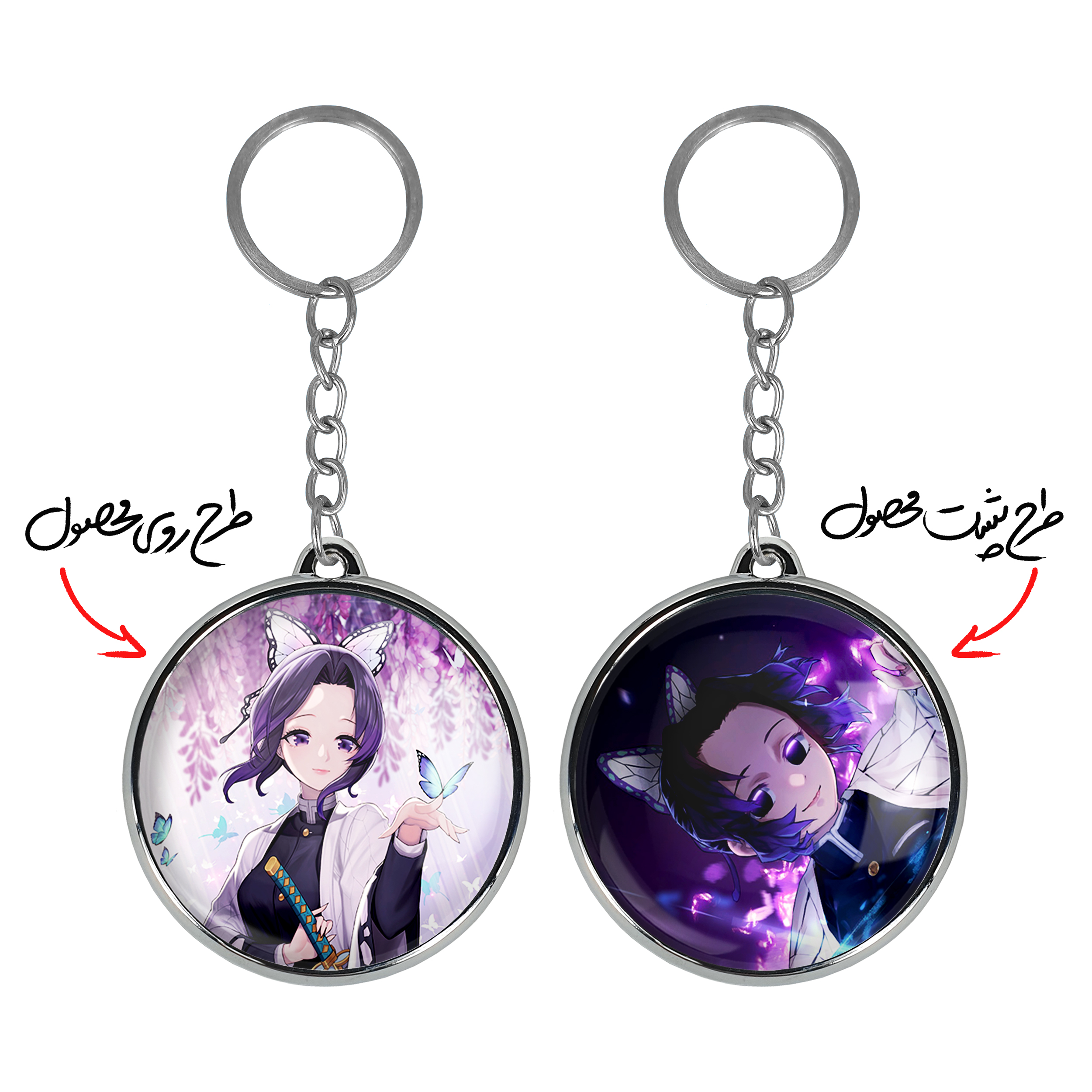 جاکلیدی دوطرفه شینوبو کوچو انیمه شیطان کش خندالو محصولی کاربردی و جدید است که در هر دو سمت محصول، تصویری متفاوت اما از یک موضوع چاپ شده و تفاوت اصلی آن با جاکلیدی های یک طرفه در همین است که هر دو سمت پشت و روی جاکلیدی، طرحی دیدنی و جذاب دارد.