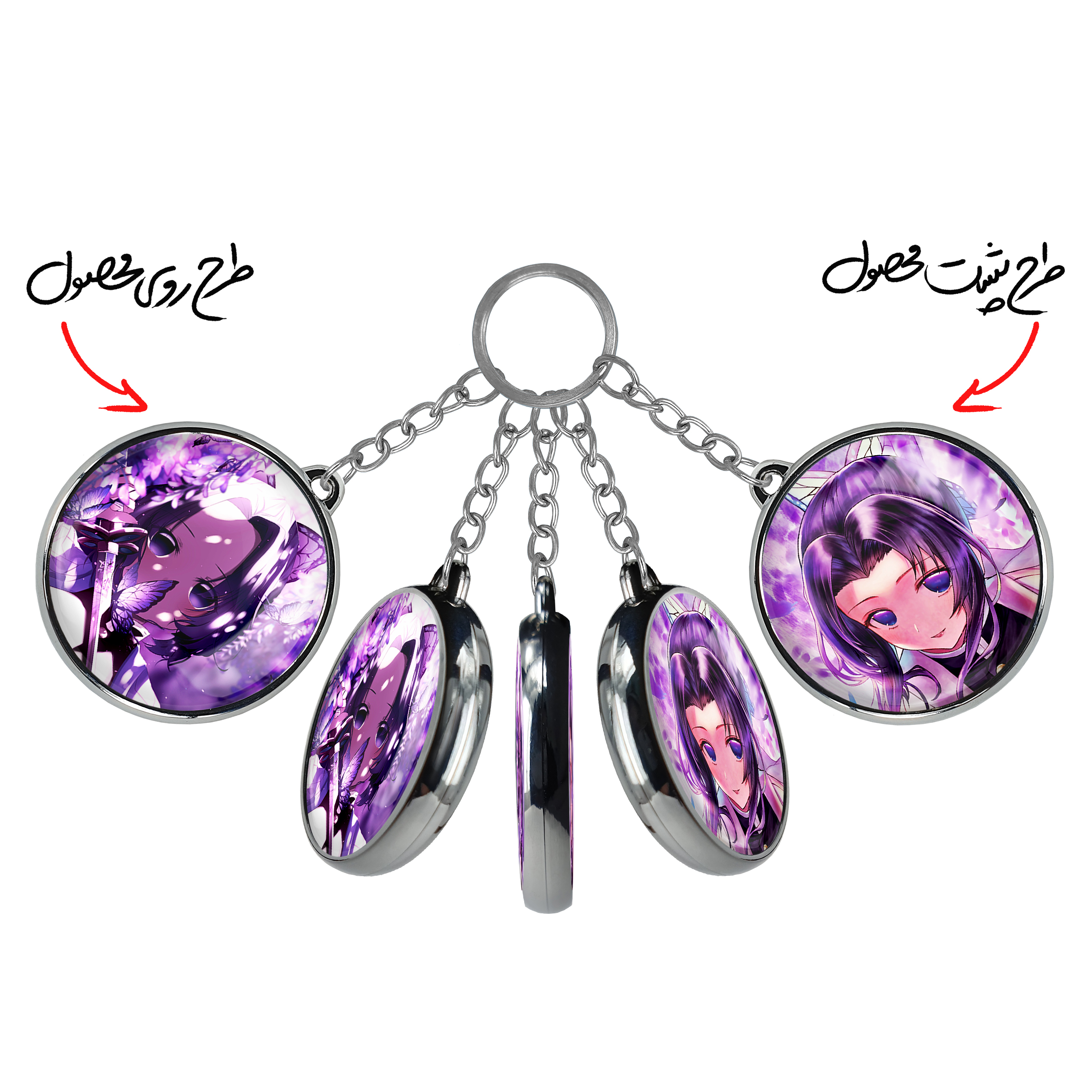 جاکلیدی دوطرفه شینوبو کوچو انیمه شیطان کش خندالو محصولی کاربردی و جدید است که در هر دو سمت محصول، تصویری متفاوت اما از یک موضوع چاپ شده و تفاوت اصلی آن با جاکلیدی های یک طرفه در همین است که هر دو سمت پشت و روی جاکلیدی، طرحی دیدنی و جذاب دارد.