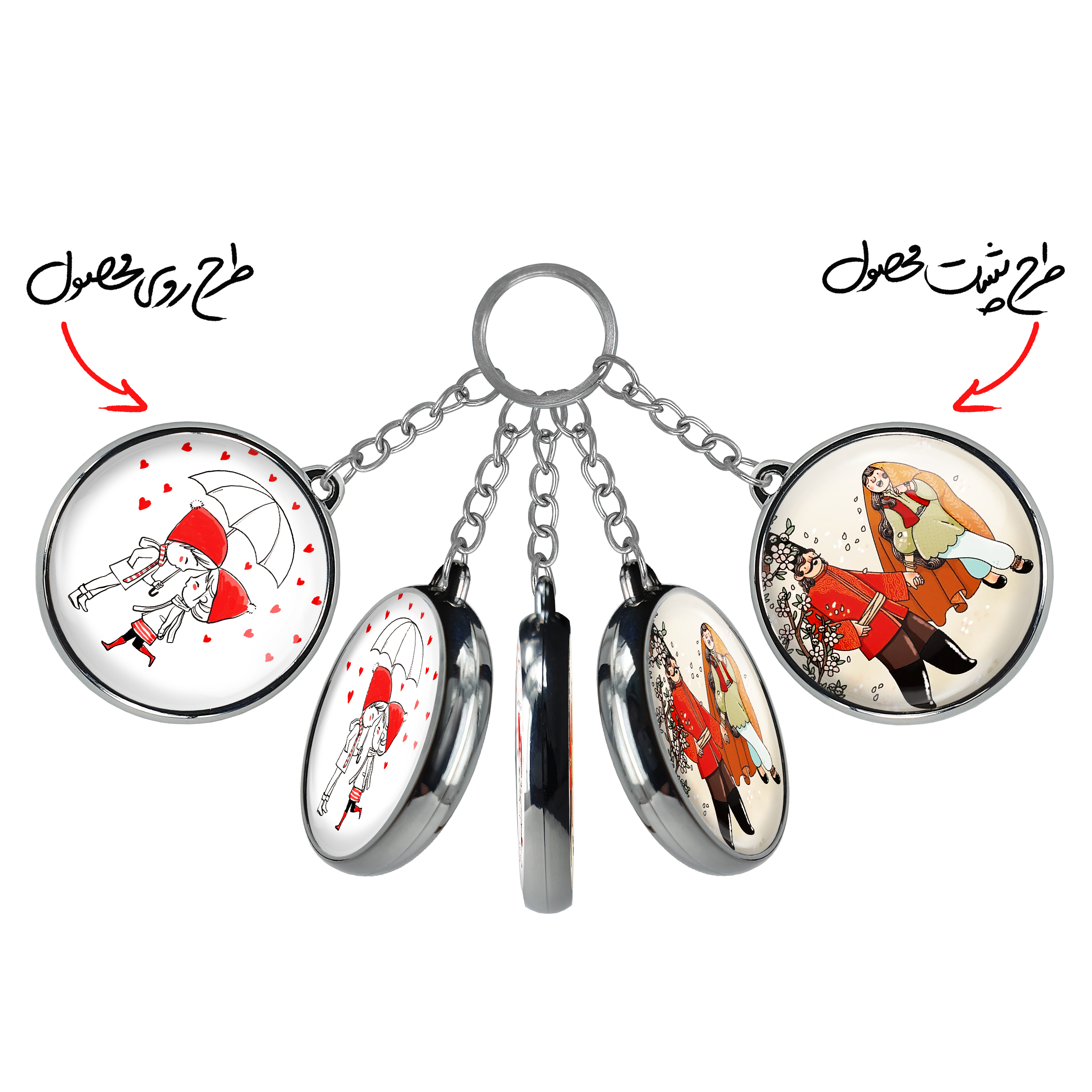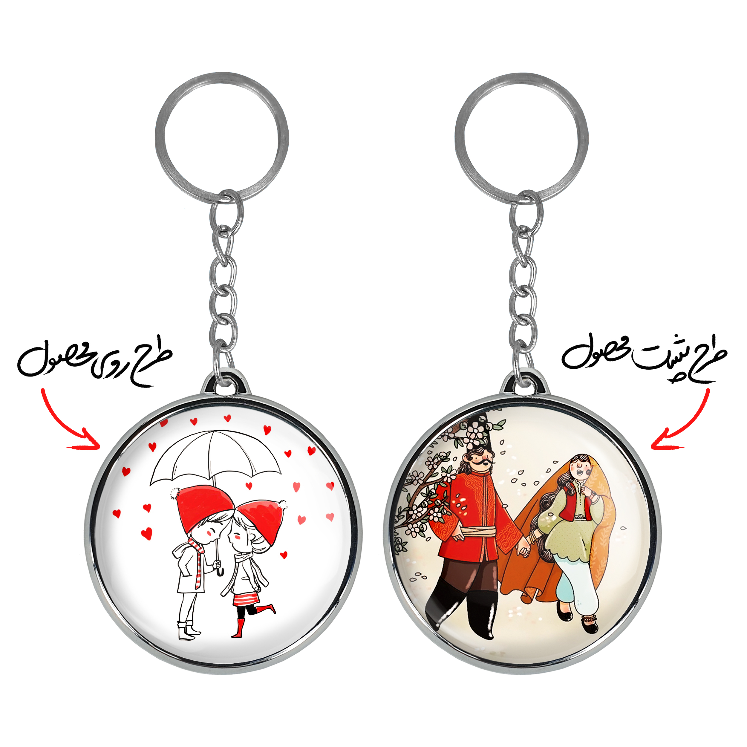 جاکلیدی دوطرفه عاشقانهخندالو محصولی کاربردی و جدید است که در هر دو سمت محصول، تصویری متفاوت اما از یک موضوع چاپ شده و تفاوت اصلی آن با جاکلیدی های یک طرفه در همین است که هر دو سمت پشت و روی جاکلیدی، طرحی دیدنی و جذاب دارد.
