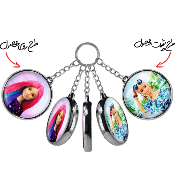 جاکلیدی دوطرفه عروسک باربی خندالو محصولی کاربردی و جدید است که در هر دو سمت محصول، تصویری متفاوت اما از یک موضوع چاپ شده و تفاوت اصلی آن با جاکلیدی های یک طرفه در همین است که هر دو سمت پشت و روی جاکلیدی، طرحی دیدنی و جذاب دارد. همچنین رینگ بکار برده شده برای دور طرح ها آبکاری کروم درجه یک و رنگ ثابت است و برخلاف سایر محصولات مشابه، از رنگ های متفرقه و یا سفید استفاده نشده، که این مهم، زیبایی محصول نهایی را چند برابر کرده است. جاکلیدی های دوطرفه عروسک باربی با استفاده از روکش سلفون براق ضدخش تولید شده که خاصیت ضدخش بودن آن عمر مفید استفاده از جاکلیدی ها را افزایش میدهد. چاپ جاکلیدی ها با دستگاه های استاندارد و با بهترین سطح کیفیت صورت گرفته و طرح با شفافیتی مثال زدنی و با سلفون چسبی تولید شده است که باعث شده محصول نهایی بدون شکست نور دیده شود. همچنین بسته بندی جذاب و مینیمال جاکلیدی دوطرفه عروسک باربی ، آنها را محصولی مناسب هدیه کرده است. زنجیر و حلقه بکار برده شده در جاکلیدی خندالو از نوع حلقه ضخیم و محکم بوده و حین استفاده آسیب نمی بیند.