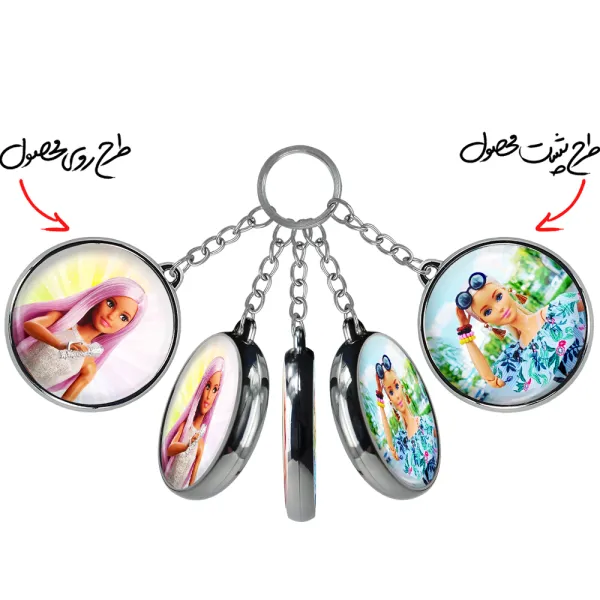 جاکلیدی دوطرفه عروسک باربی خندالو محصولی کاربردی و جدید است که در هر دو سمت محصول، تصویری متفاوت اما از یک موضوع چاپ شده و تفاوت اصلی آن با جاکلیدی های یک طرفه در همین است که هر دو سمت پشت و روی جاکلیدی، طرحی دیدنی و جذاب دارد.