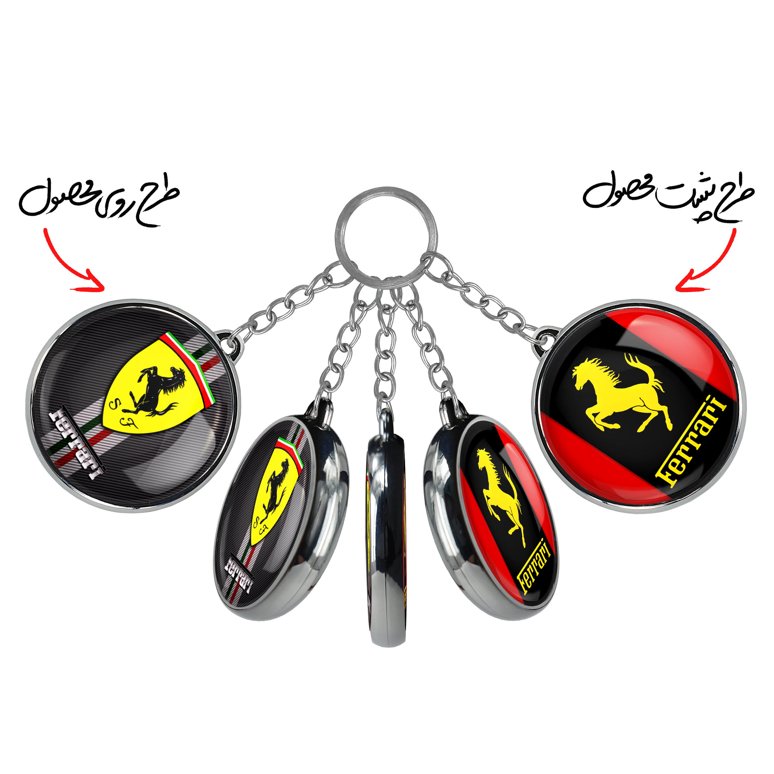 جاکلیدی دوطرفه فراری Ferrari خندالو محصولی کاربردی و جدید است که در هر دو سمت محصول، تصویری متفاوت اما از یک موضوع چاپ شده و تفاوت اصلی آن با جاکلیدی های یک طرفه در همین است که هر دو سمت پشت و روی جاکلیدی، طرحی دیدنی و جذاب دارد. همچنین رینگ بکار برده شده برای دور طرح ها آبکاری کروم درجه یک و رنگ ثابت است و برخلاف سایر محصولات مشابه، از رنگ های متفرقه و یا سفید استفاده نشده، که این مهم، زیبایی محصول نهایی را چند برابر کرده است. جاکلیدی های دوطرفه فراری Ferrari با استفاده از روکش سلفون براق ضدخش تولید شده که خاصیت ضدخش بودن آن عمر مفید استفاده از جاکلیدی ها را افزایش میدهد. چاپ جاکلیدی ها با دستگاه های استاندارد و با بهترین سطح کیفیت صورت گرفته و طرح با شفافیتی مثال زدنی و با سلفون چسبی تولید شده است که باعث شده محصول نهایی بدون شکست نور دیده شود. همچنین بسته بندی جذاب و مینیمال جاکلیدی دوطرفه فراری Ferrari ، آنها را محصولی مناسب هدیه کرده است. زنجیر و حلقه بکار برده شده در جاکلیدی خندالو از نوع حلقه ضخیم و محکم بوده و حین استفاده آسیب نمی بیند.