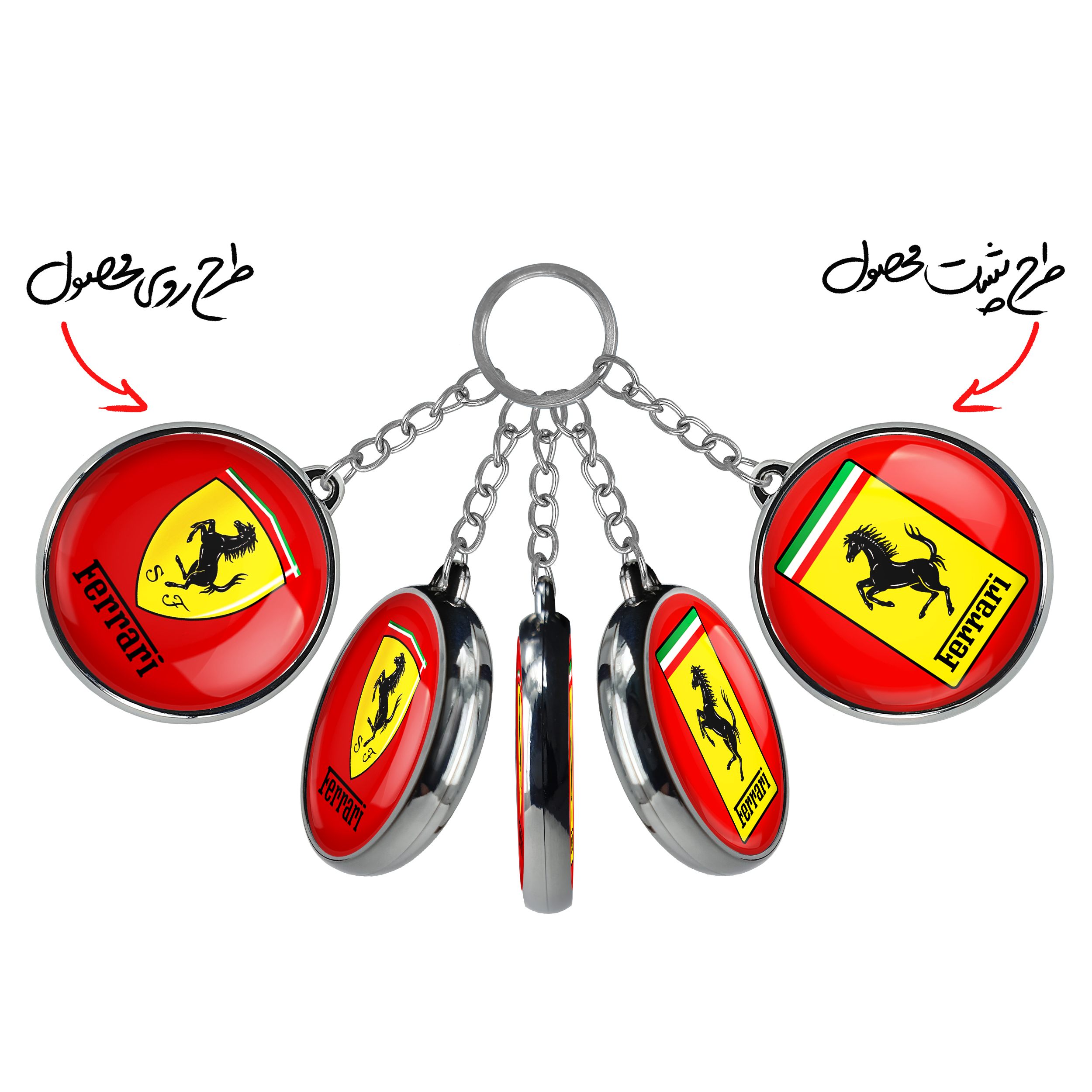 جاکلیدی دوطرفه فراری Ferrari خندالو محصولی کاربردی و جدید است که در هر دو سمت محصول، تصویری متفاوت اما از یک موضوع چاپ شده و تفاوت اصلی آن با جاکلیدی های یک طرفه در همین است که هر دو سمت پشت و روی جاکلیدی، طرحی دیدنی و جذاب دارد. همچنین رینگ بکار برده شده برای دور طرح ها آبکاری کروم درجه یک و رنگ ثابت است و برخلاف سایر محصولات مشابه، از رنگ های متفرقه و یا سفید استفاده نشده، که این مهم، زیبایی محصول نهایی را چند برابر کرده است. جاکلیدی های دوطرفه فراری Ferrari با استفاده از روکش سلفون براق ضدخش تولید شده که خاصیت ضدخش بودن آن عمر مفید استفاده از جاکلیدی ها را افزایش میدهد. چاپ جاکلیدی ها با دستگاه های استاندارد و با بهترین سطح کیفیت صورت گرفته و طرح با شفافیتی مثال زدنی و با سلفون چسبی تولید شده است که باعث شده محصول نهایی بدون شکست نور دیده شود. همچنین بسته بندی جذاب و مینیمال جاکلیدی دوطرفه فراری Ferrari ، آنها را محصولی مناسب هدیه کرده است. زنجیر و حلقه بکار برده شده در جاکلیدی خندالو از نوع حلقه ضخیم و محکم بوده و حین استفاده آسیب نمی بیند.