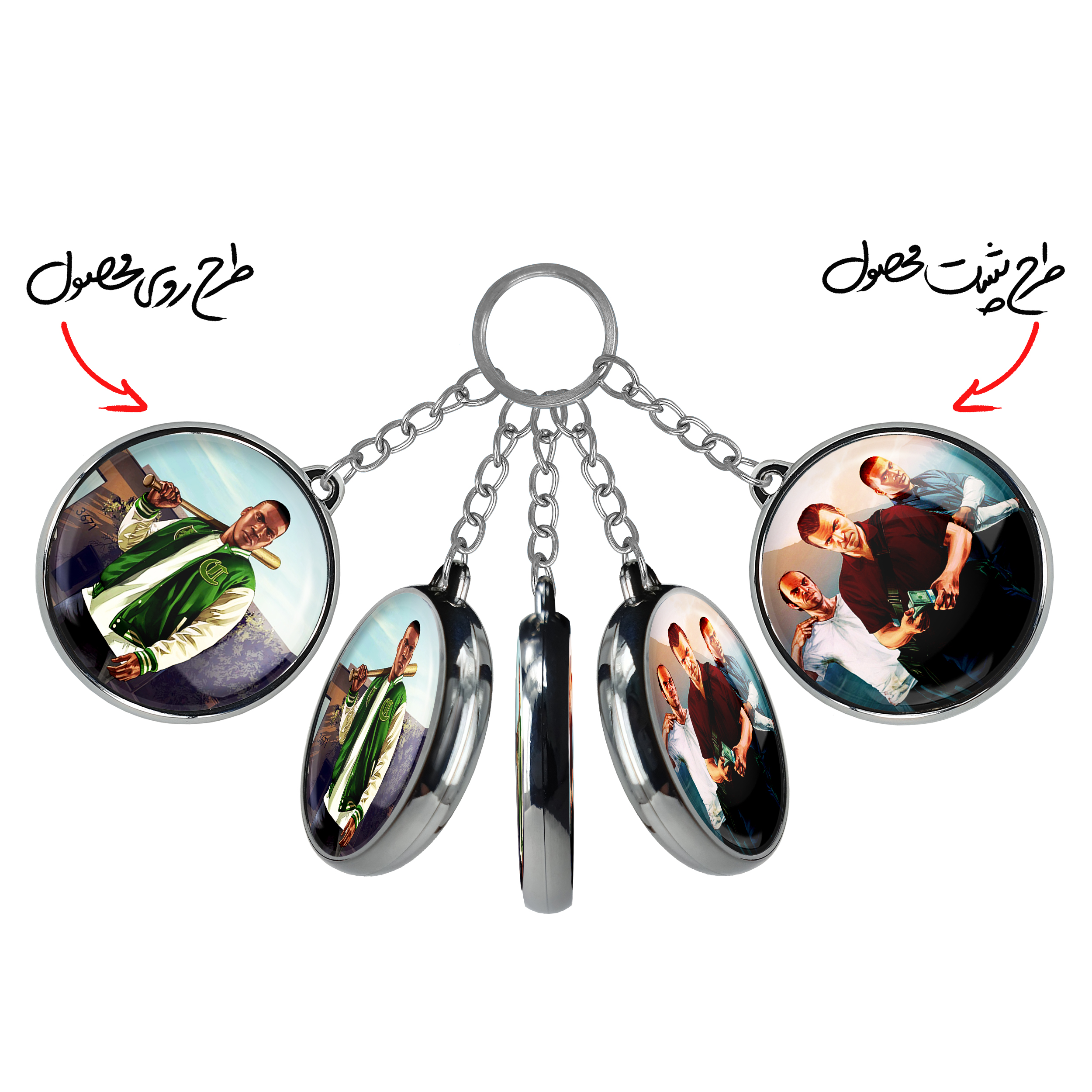 جاکلیدی دوطرفه فرانکلین جی تی ای GTAخندالو محصولی کاربردی و جدید است که در هر دو سمت محصول، تصویری متفاوت اما از یک موضوع چاپ شده و تفاوت اصلی آن با جاکلیدی های یک طرفه در همین است که هر دو سمت پشت و روی جاکلیدی، طرحی دیدنی و جذاب دارد. همچنین رینگ بکار برده شده برای دور طرح ها آبکاری کروم درجه یک و رنگ ثابت است و برخلاف سایر محصولات مشابه، از رنگ های متفرقه و یا سفید استفاده نشده، که این مهم، زیبایی محصول نهایی را چند برابر کرده است. جاکلیدی های دوطرفه فرانکلین جی تی ای GTAبا استفاده از روکش سلفون براق ضدخش تولید شده که خاصیت ضدخش بودن آن عمر مفید استفاده از جاکلیدی ها را افزایش میدهد. چاپ جاکلیدی ها با دستگاه های استاندارد و با بهترین سطح کیفیت صورت گرفته و طرح با شفافیتی مثال زدنی و با سلفون چسبی تولید شده است که باعث شده محصول نهایی بدون شکست نور دیده شود. همچنین بسته بندی جذاب و مینیمال جاکلیدی دوطرفه فرانکلین جی تی ای GTA، آنها را محصولی مناسب هدیه کرده است. زنجیر و حلقه بکار برده شده در جاکلیدی خندالو از نوع حلقه ضخیم و محکم بوده و حین استفاده آسیب نمی بیند.