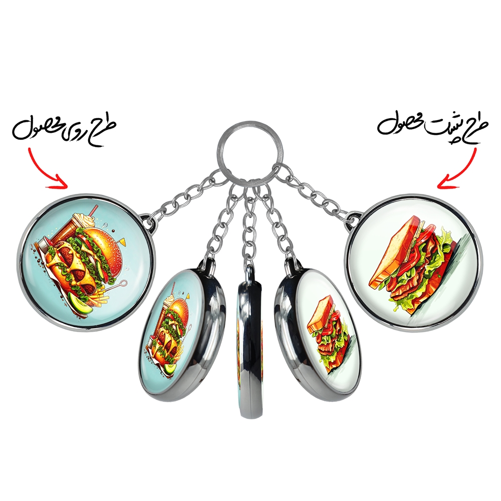جاکلیدی دوطرفه فست فود (Fast Food) خندالو محصولی کاربردی و جدید است که در هر دو سمت محصول، تصویری متفاوت اما از یک موضوع چاپ شده و تفاوت اصلی آن با جاکلیدی های یک طرفه در همین است که هر دو سمت پشت و روی جاکلیدی، طرحی دیدنی و جذاب دارد.