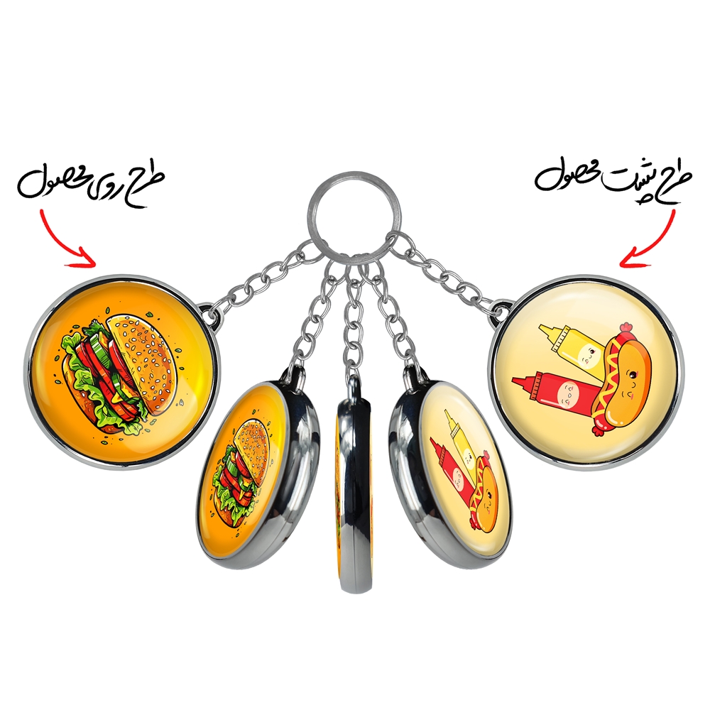 جاکلیدی دوطرفه فست فود (Fast Food) خندالو محصولی کاربردی و جدید است که در هر دو سمت محصول، تصویری متفاوت اما از یک موضوع چاپ شده و تفاوت اصلی آن با جاکلیدی های یک طرفه در همین است که هر دو سمت پشت و روی جاکلیدی، طرحی دیدنی و جذاب دارد.