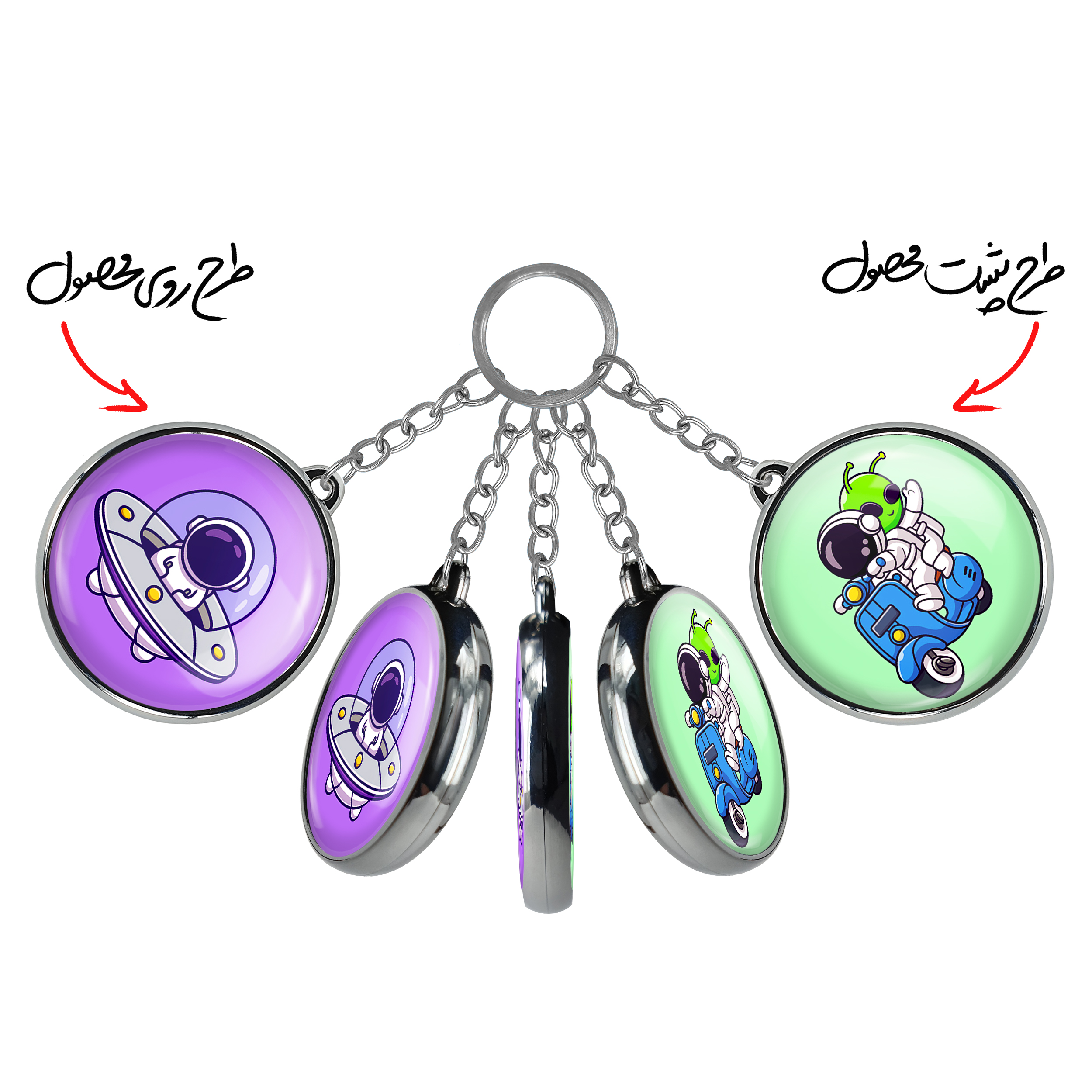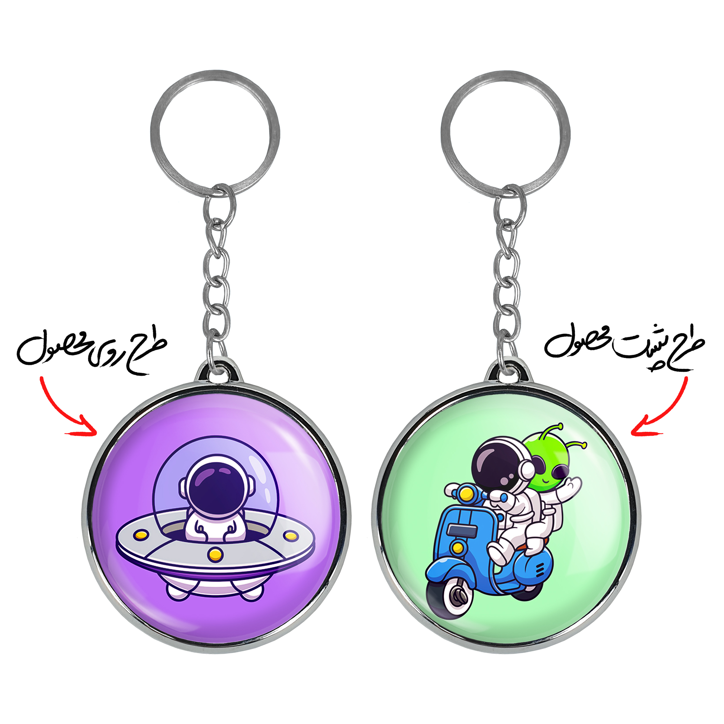 جاکلیدی دوطرفه فضانوردخندالو محصولی کاربردی و جدید است که در هر دو سمت محصول، تصویری متفاوت اما از یک موضوع چاپ شده و تفاوت اصلی آن با جاکلیدی های یک طرفه در همین است که هر دو سمت پشت و روی جاکلیدی، طرحی دیدنی و جذاب دارد.