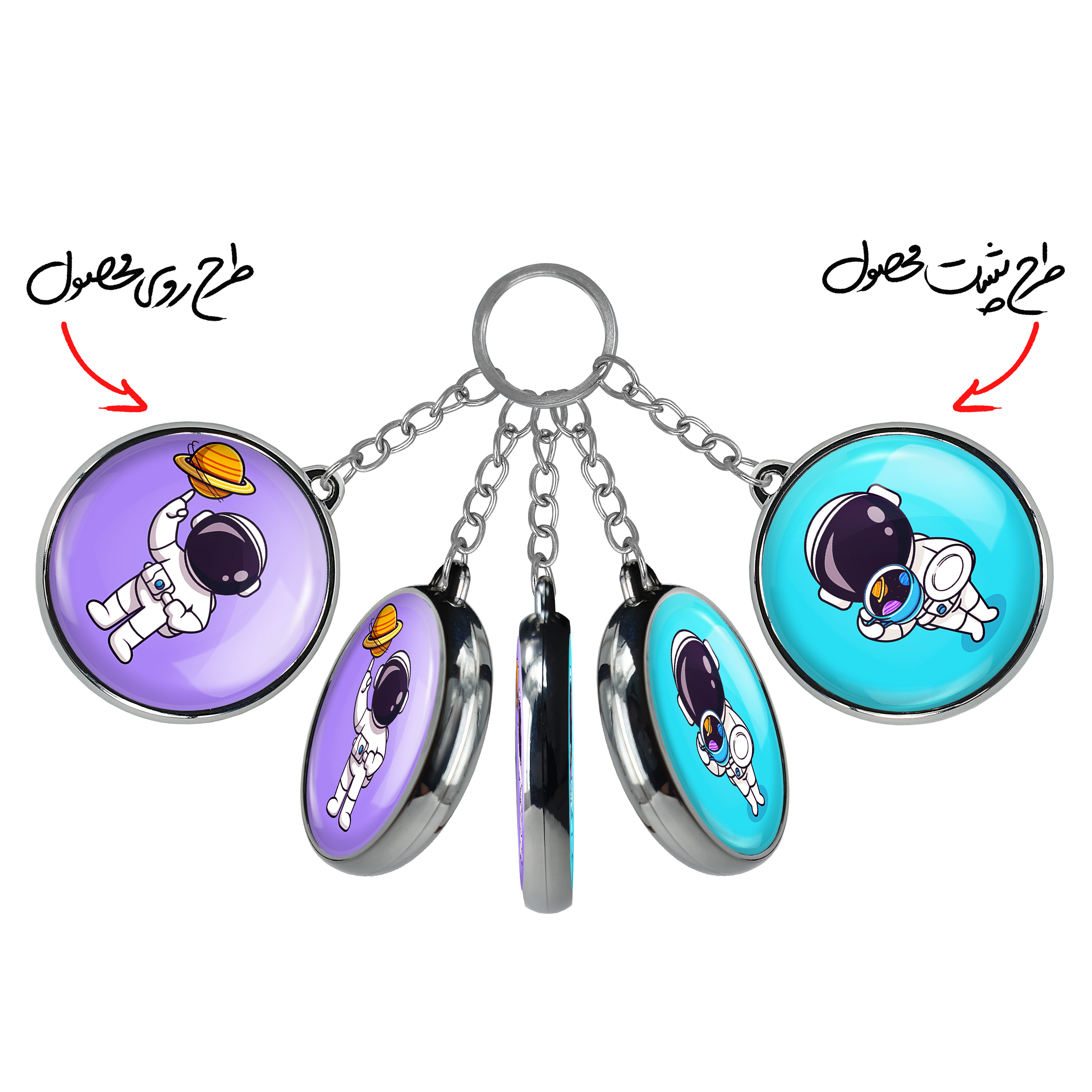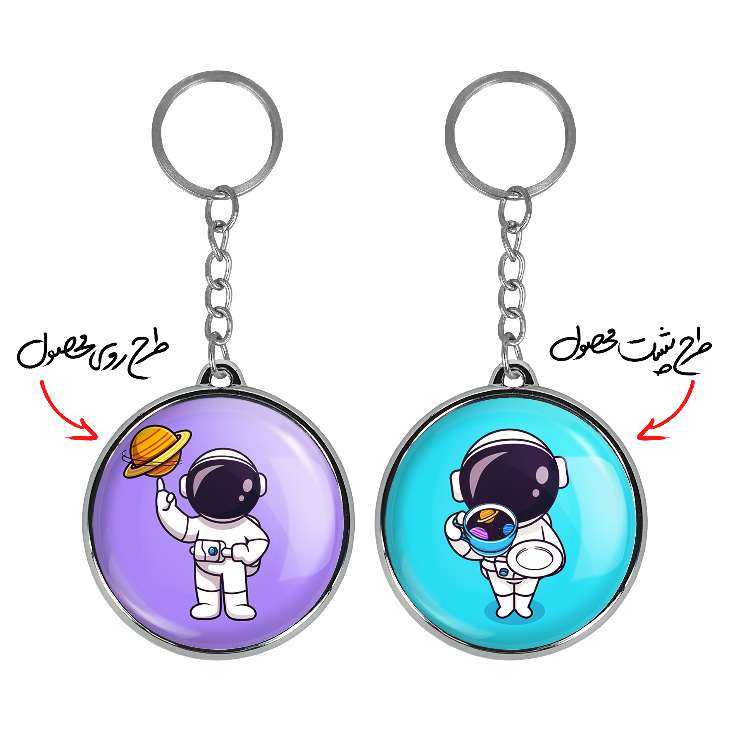 جاکلیدی دوطرفه فضانوردخندالو محصولی کاربردی و جدید است که در هر دو سمت محصول، تصویری متفاوت اما از یک موضوع چاپ شده و تفاوت اصلی آن با جاکلیدی های یک طرفه در همین است که هر دو سمت پشت و روی جاکلیدی، طرحی دیدنی و جذاب دارد.