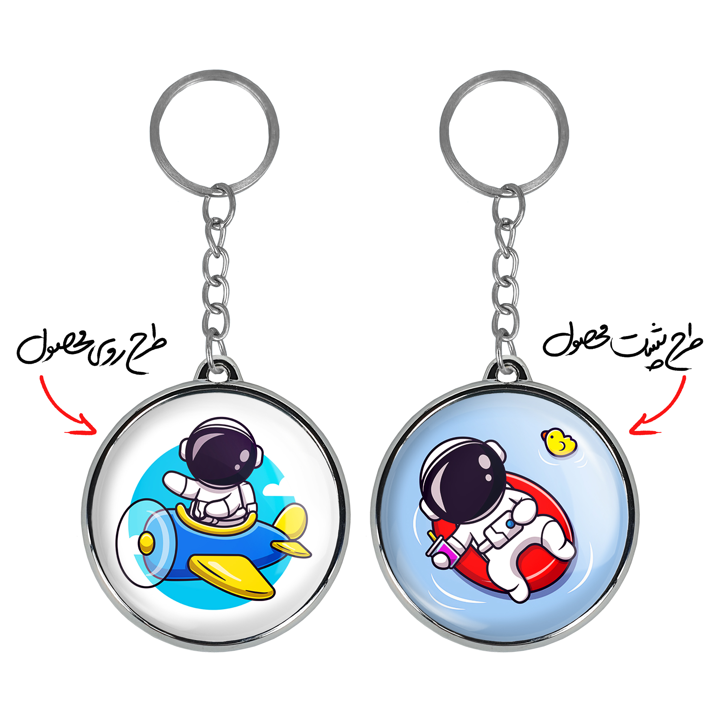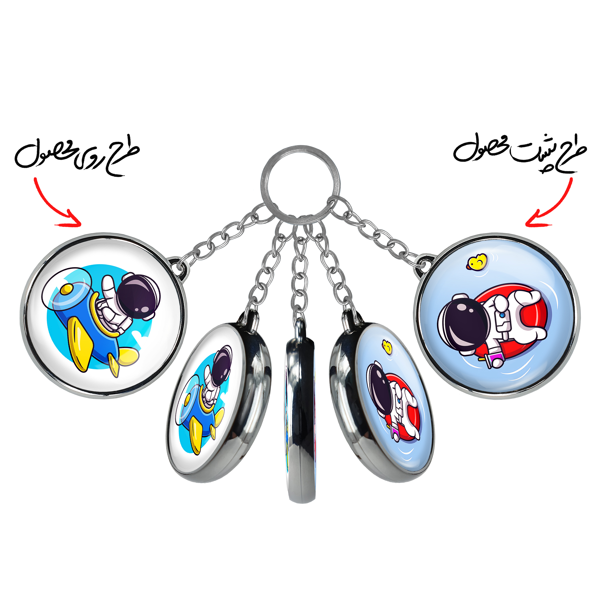 جاکلیدی دوطرفه فضانوردخندالو محصولی کاربردی و جدید است که در هر دو سمت محصول، تصویری متفاوت اما از یک موضوع چاپ شده و تفاوت اصلی آن با جاکلیدی های یک طرفه در همین است که هر دو سمت پشت و روی جاکلیدی، طرحی دیدنی و جذاب دارد. همچنین رینگ بکار برده شده برای دور طرح ها آبکاری کروم درجه یک و رنگ ثابت است و برخلاف سایر محصولات مشابه، از رنگ های متفرقه و یا سفید استفاده نشده، که این مهم، زیبایی محصول نهایی را چند برابر کرده است. جاکلیدی های دوطرفه فضانوردبا استفاده از روکش سلفون براق ضدخش تولید شده که خاصیت ضدخش بودن آن عمر مفید استفاده از جاکلیدی ها را افزایش میدهد. چاپ جاکلیدی ها با دستگاه های استاندارد و با بهترین سطح کیفیت صورت گرفته و طرح با شفافیتی مثال زدنی و با سلفون چسبی تولید شده است که باعث شده محصول نهایی بدون شکست نور دیده شود. همچنین بسته بندی جذاب و مینیمال جاکلیدی دوطرفه فضانورد، آنها را محصولی مناسب هدیه کرده است. زنجیر و حلقه بکار برده شده در جاکلیدی خندالو از نوع حلقه ضخیم و محکم بوده و حین استفاده آسیب نمی بیند.