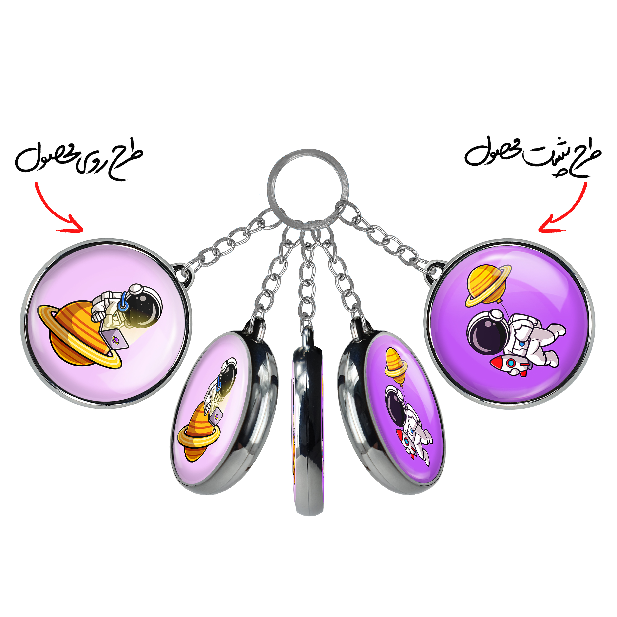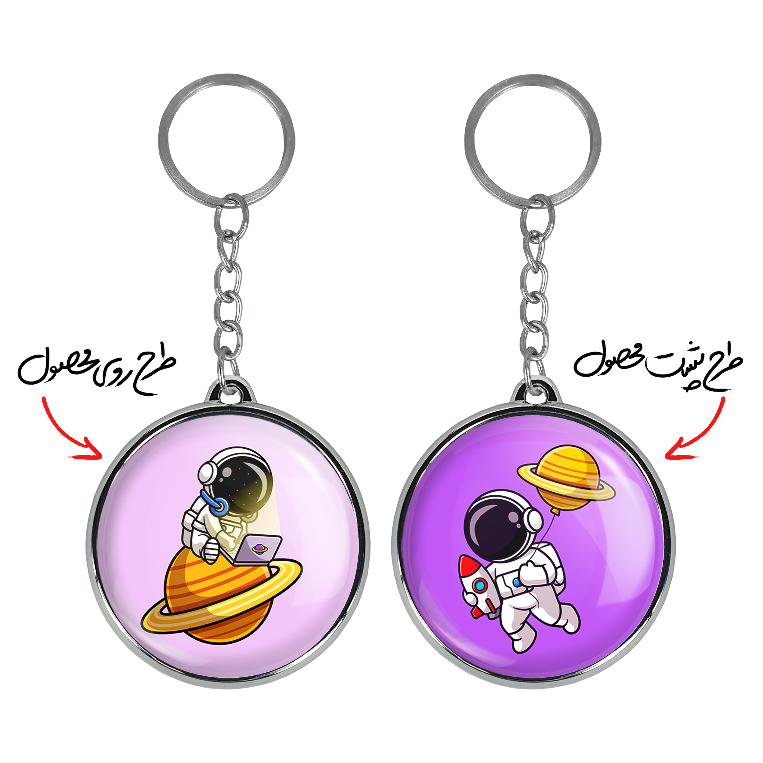 جاکلیدی دوطرفه فضانوردخندالو محصولی کاربردی و جدید است که در هر دو سمت محصول، تصویری متفاوت اما از یک موضوع چاپ شده و تفاوت اصلی آن با جاکلیدی های یک طرفه در همین است که هر دو سمت پشت و روی جاکلیدی، طرحی دیدنی و جذاب دارد.