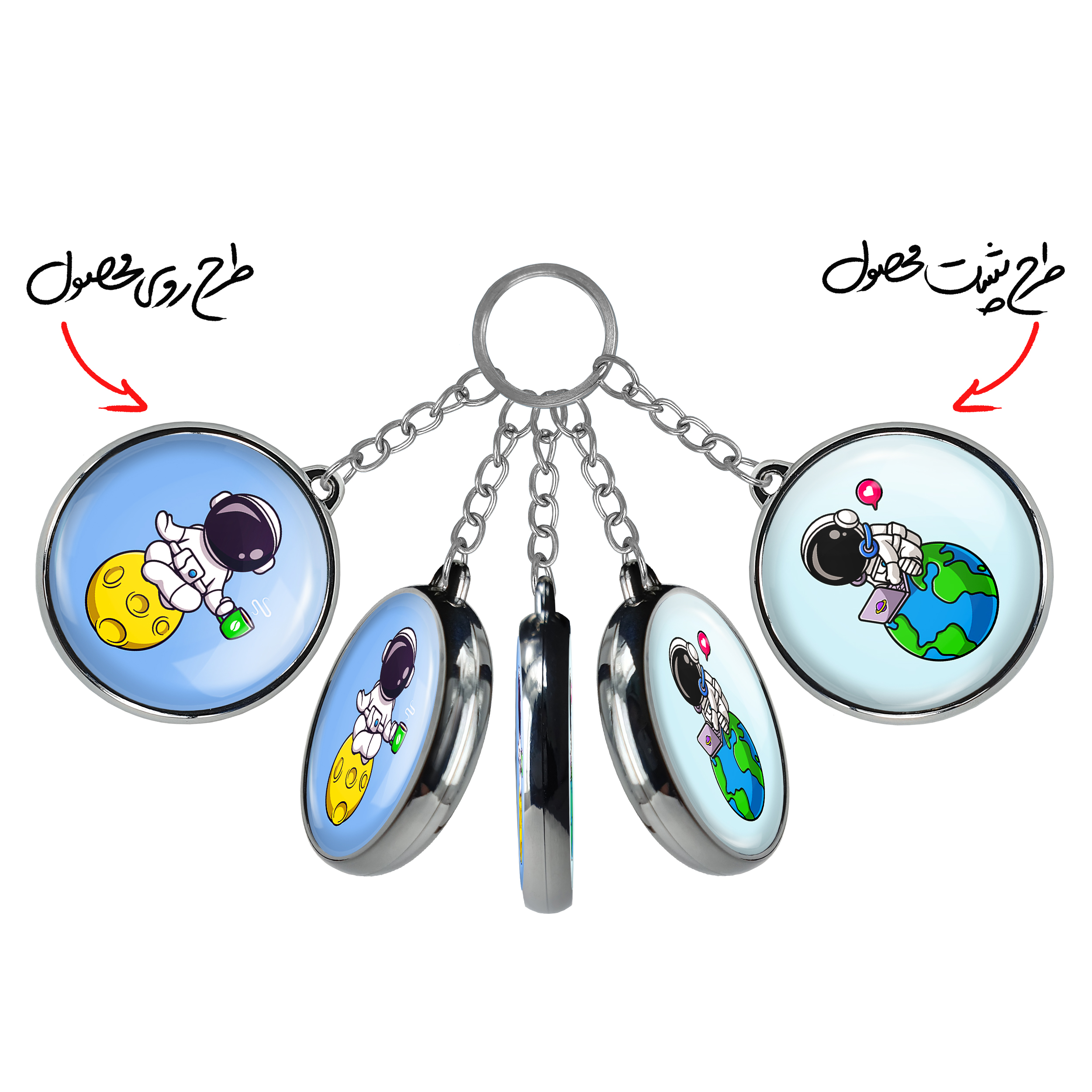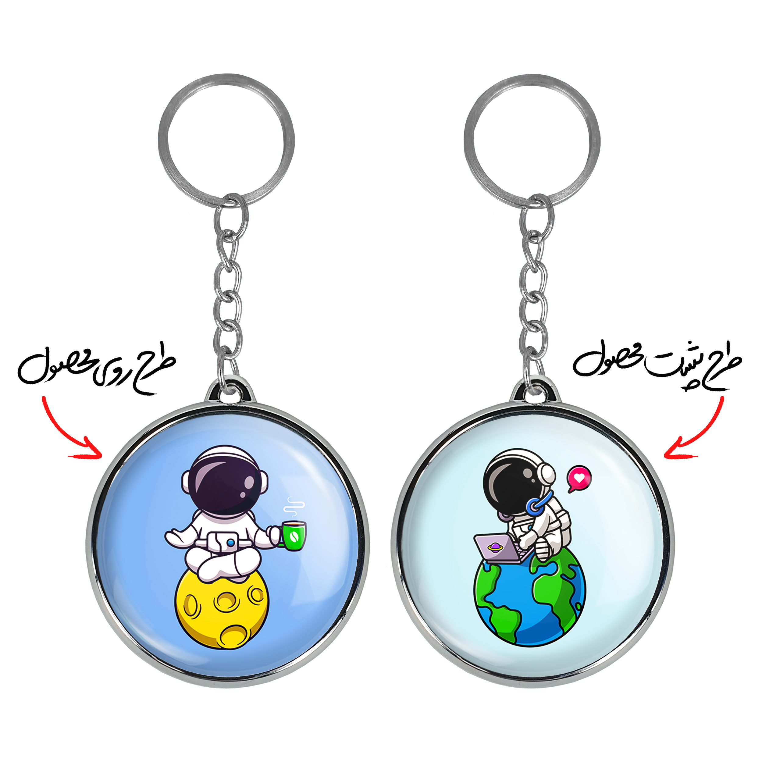 جاکلیدی دوطرفه فضانوردخندالو محصولی کاربردی و جدید است که در هر دو سمت محصول، تصویری متفاوت اما از یک موضوع چاپ شده و تفاوت اصلی آن با جاکلیدی های یک طرفه در همین است که هر دو سمت پشت و روی جاکلیدی، طرحی دیدنی و جذاب دارد.